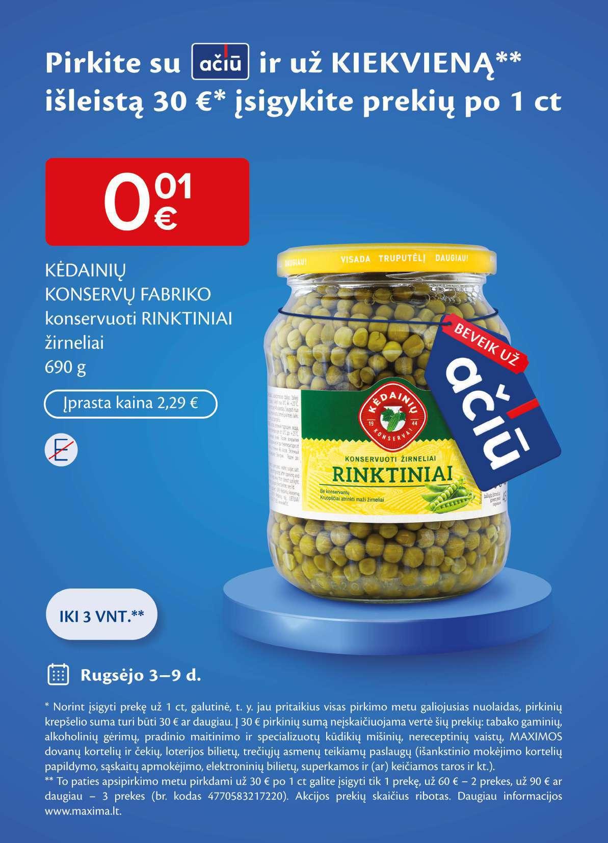 ***Iki 2024 12 31 nebus didinamos prekių, pa žymėtų prekių ženklais EXTRA LINE, FARM MILK, OCEAN, PORMET, MIO&RIO, įprastos (neakcinės) pardavimo kainos, kurios MAXIMOS prekybos tinkle 2023 m. sausio – 2024 m. liepos mėn. laikotarpiu fiksuotos kaip ma žiausios tų pačių prekių grupių įprastos (neakcinės) pardavimo kainos. Parduotuvėse ieškokite specialiu ženklu „Kainų įš alas“ pa žymėtų prekių