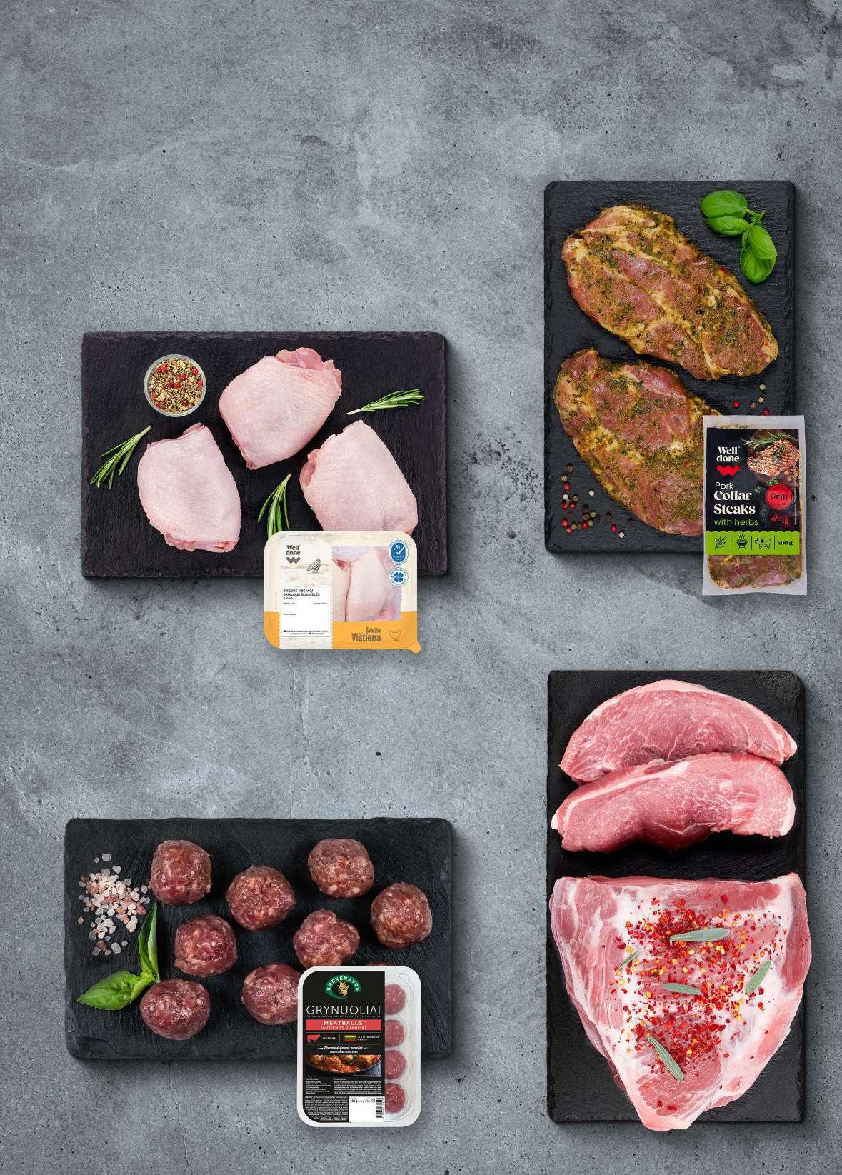 Dalyvaujančios akcijos prekės pažymėtos raudonomis kainų etiketėmis.