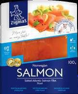 Sūdyta; šaltai rūkyta pjaustyta atlantinių lašišų filė ZIGMAS**