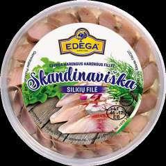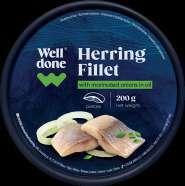 ŠVIEŽIA ŽUVIS ir skonių jūra lėkštėje Sūdyta silkių filė aliejuje su baravykais; žolelėmis WELL DONE** 2 rūšių, 200 g 1 kg – 7,45 €