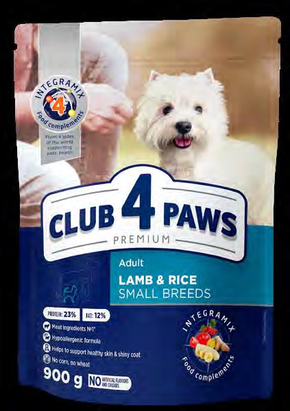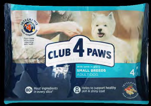 Konservuotas šunų ėdalas CLUB 4 PAWS su ėriena** 1 maiš. (4 vnt. × 85 g) 1 kg – 3,97 € 2, 29 € € 35 1 %-41