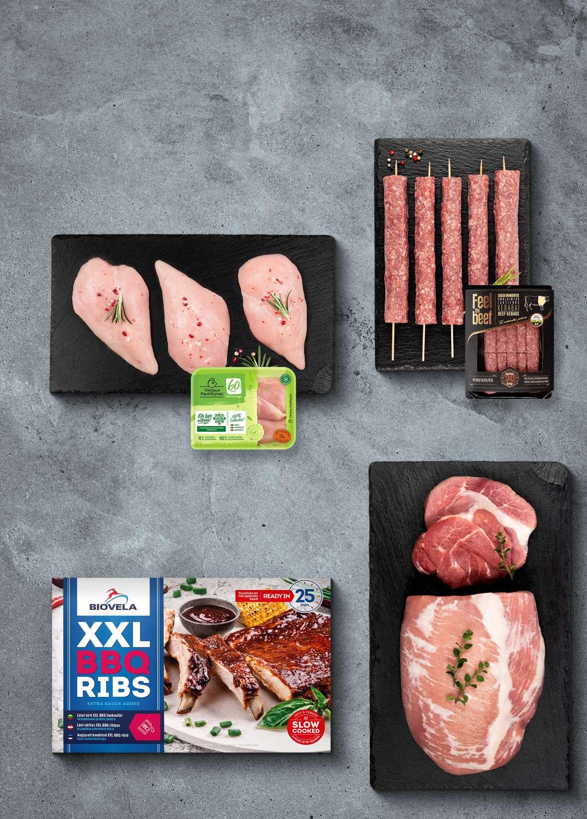 vištienos; viščiukų šlaunelių mėsos iešmeliai FIESTA su marinatu** 2 rūšių, 480 g 1 kg – 9,98