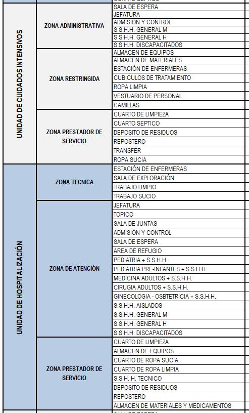 • Deberán considerar ambientes complementarios y así como sus áreas mínimas.