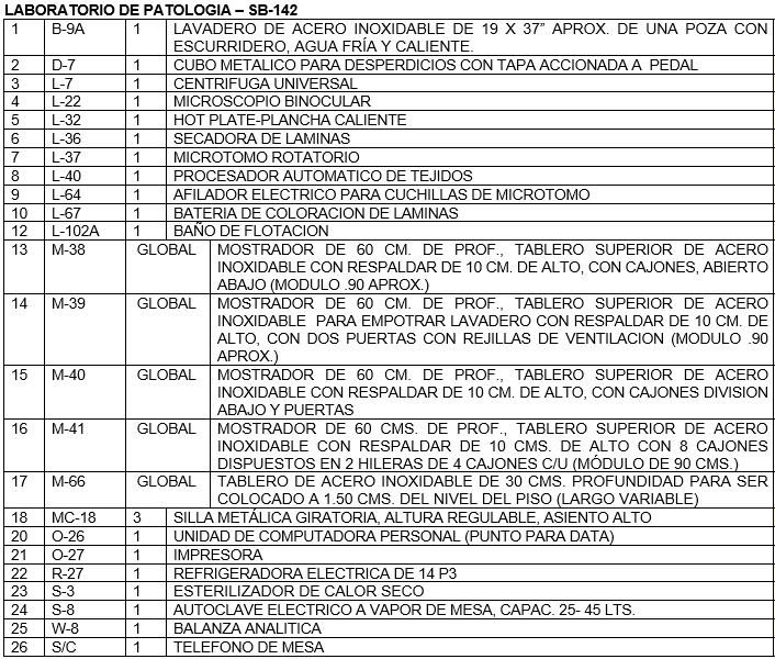 Algunos de los métodos de estudio más utilizados son: patología molecular, macroscopía, microscopía óptica y electrónica EQUIPAMIENTO VISTA DE PLANTA Área considerada 30.50m²