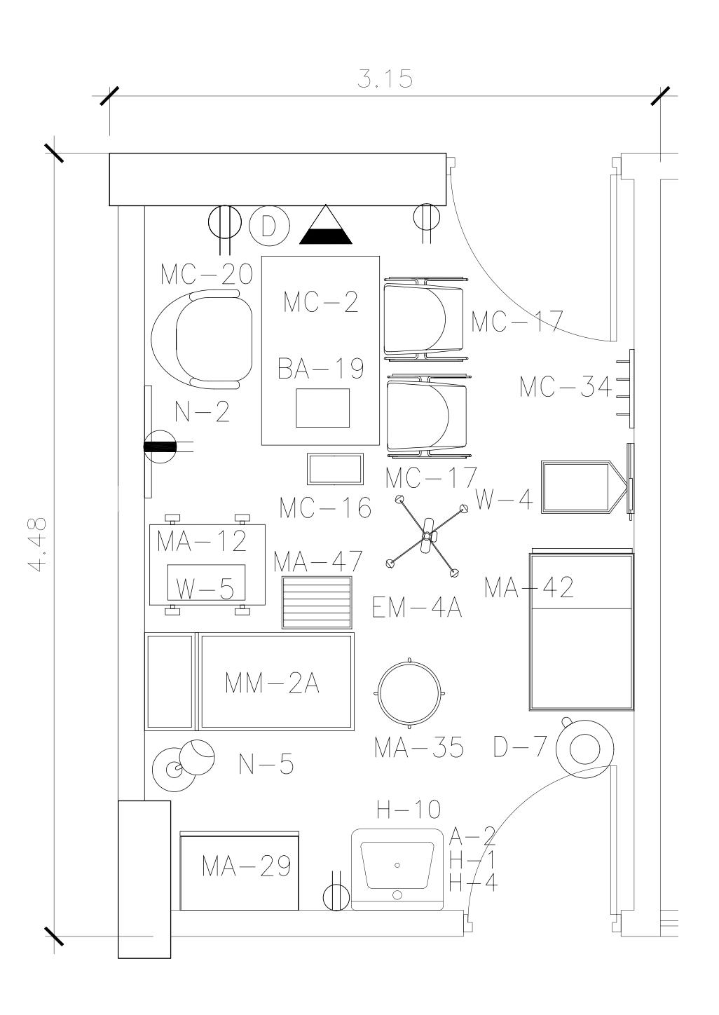 EQUIPAMIENTO VISTA DE PLANTA Área considerada 12.75m²