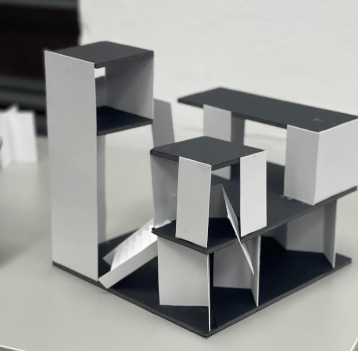When transferring into a 3D model, I want to keep the variability and mobility in the 2D sketch. Therefore, I made one of the support walls on the first floor a sliding door and made other walls can be move so that people could change the space to what they like.