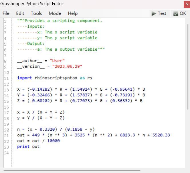 As AI operations involve estimating and predicting a single output using one or multiple inputs, and since colors in Grasshopper are typically represented in RGB or hue, obtaining a suitable set of values for effective regression analysis through these operations has posed a significant challenge. I considered using the concept of color temperature to convert colors into numerical values within the visible light frequency range for this purpose.
