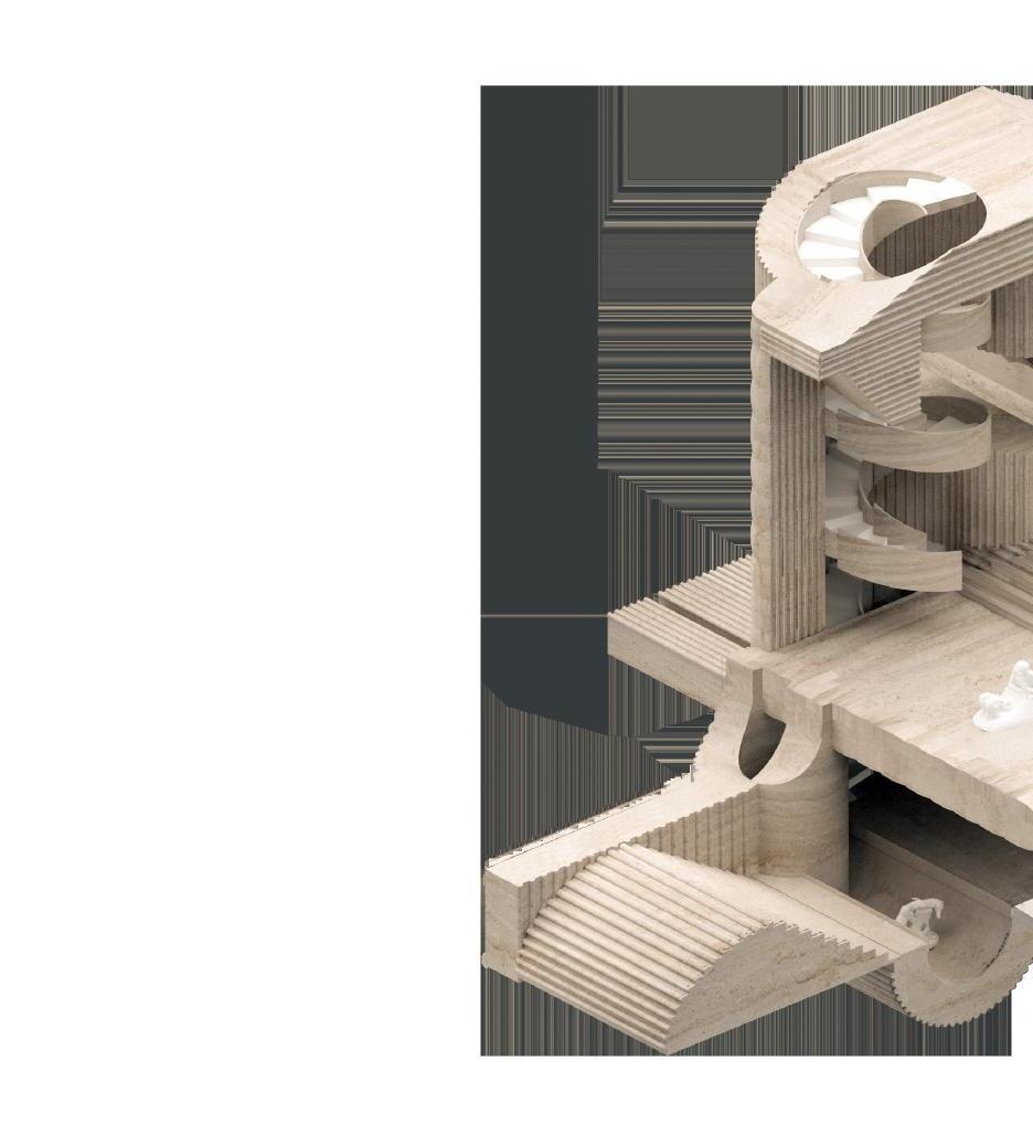 With the application of sand,the physical model shows the relationship between the sand and the stone in the interior. Sand activates the gallery spaces.