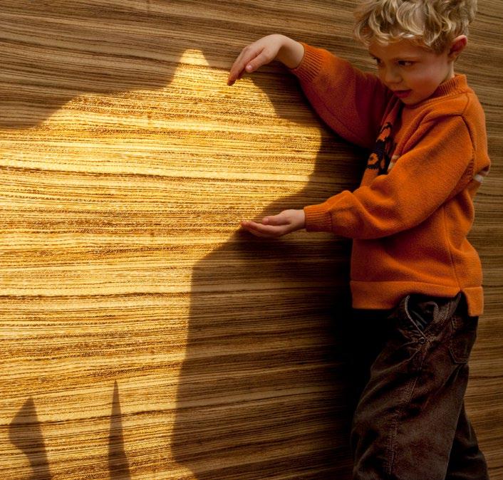 terrazzo and pebbles reinforces the theme of nature. The gallery space is intended to provide a positive distraction, a destination where patients and families can discover new things each time they visit, while also offering a connection to the lobby garden outside.