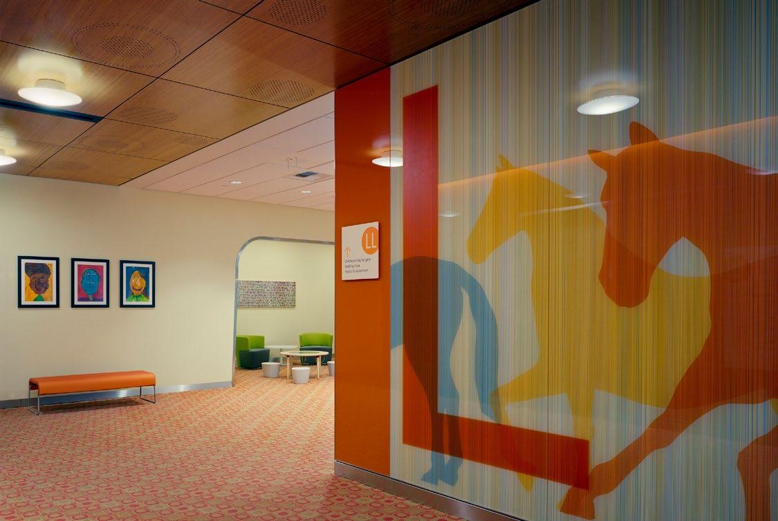 As one of the Guiding Principles for the Randall Children’s Hospital, the role of art was established as a major contributor to developing a healing, animated environment. Art is intended to be a catalyst for providing positive distractions, creating destinations, and enlivening spaces. From the frieze in the lobby, the trees and birdhouses in the gallery, to the animals and other environmental graphics in the corridors and patient rooms, the art installations in Randall Children’s Hospital contribute to an environment of inspiration and healing for all to enjoy.