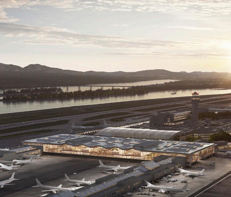 INSTEAD OF BUILDING A NEW AIRPORT, THE DECISION TO REUSE MUCH OF THE EXISTING TERMINAL ACHIEVED A 70% REDUCTION IN OVERALL STRUCTURAL EMBODIED CARBON FOOTPRINT. CONSIDERING MATERIALS ONLY, A 30% REDUCTION WAS ACHIEVED THROUGH THE USE OF SUSTAINABLY-HARVESTED MASS TIMBER, LOW CARBON CONCRETE, AND LOCALLY PRODUCED STEEL.