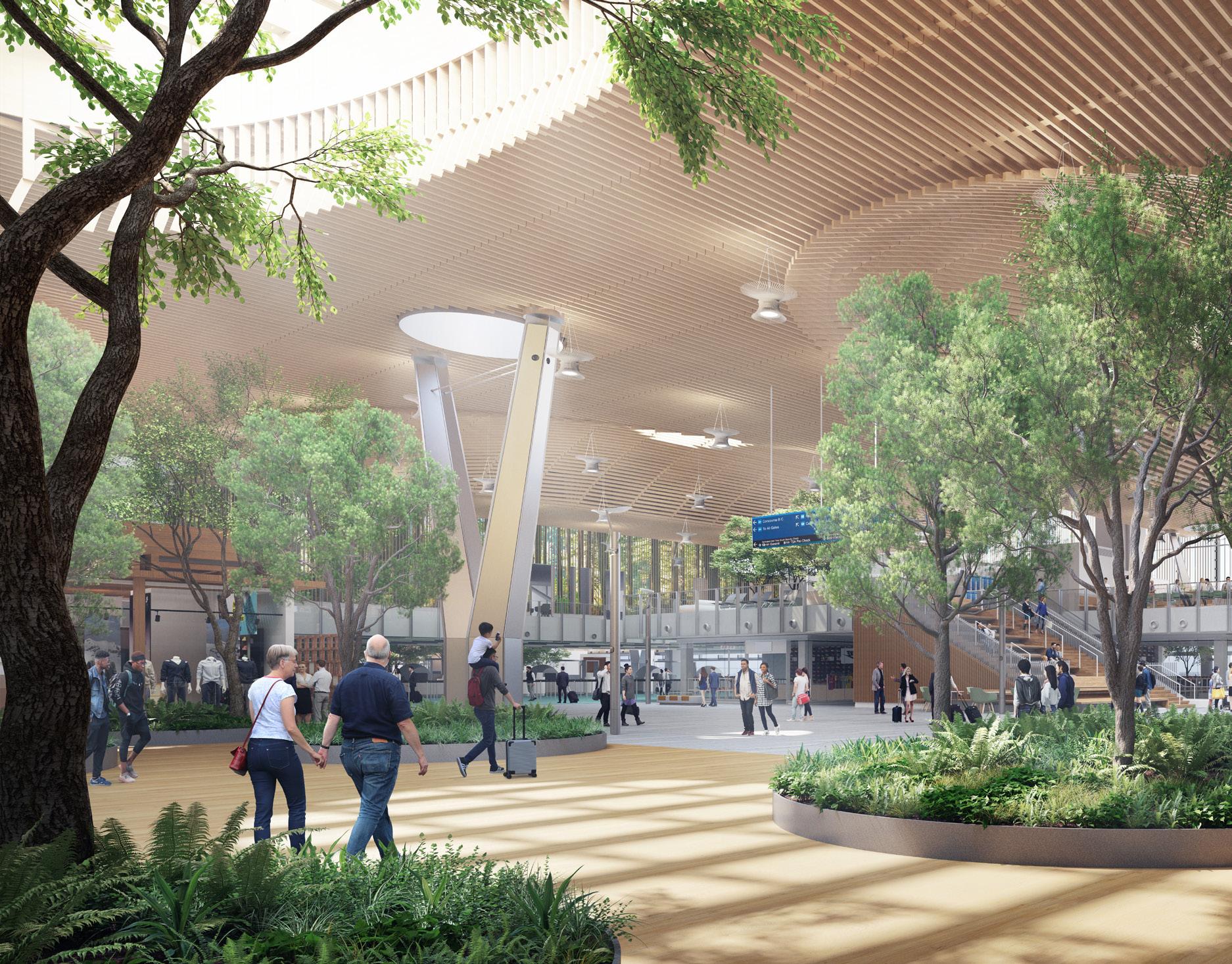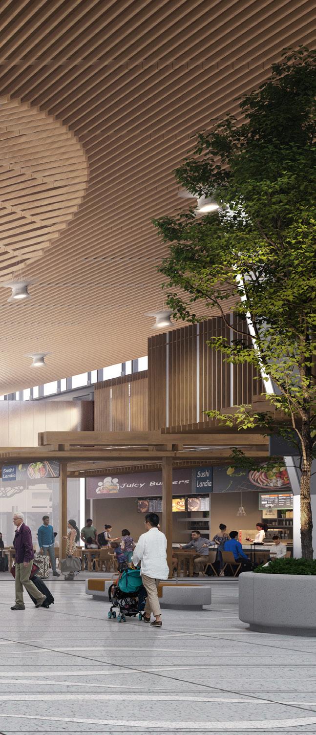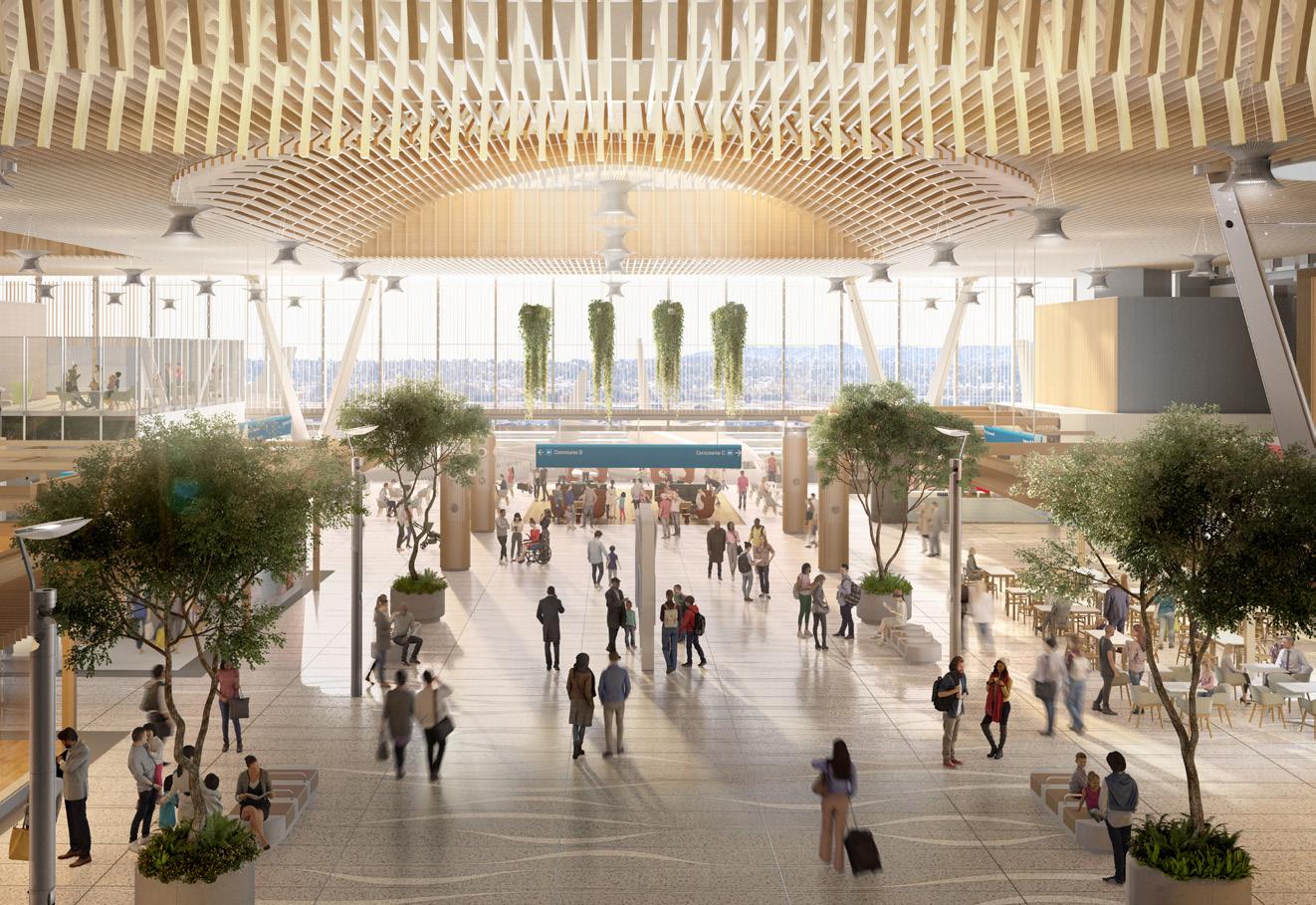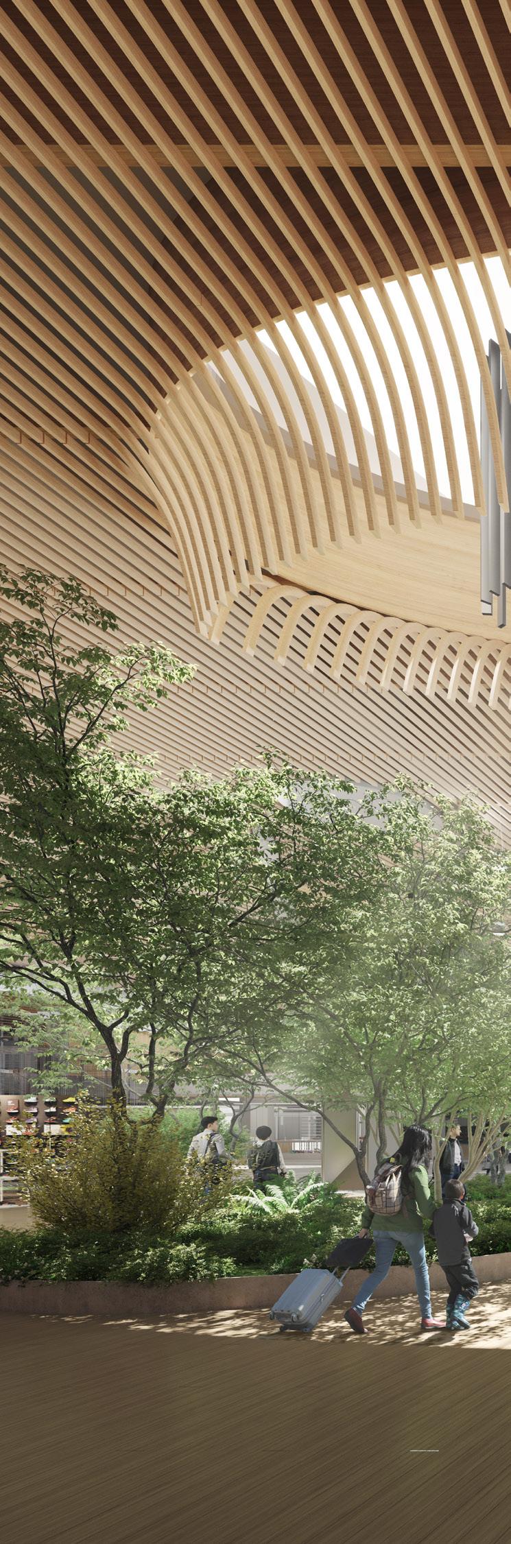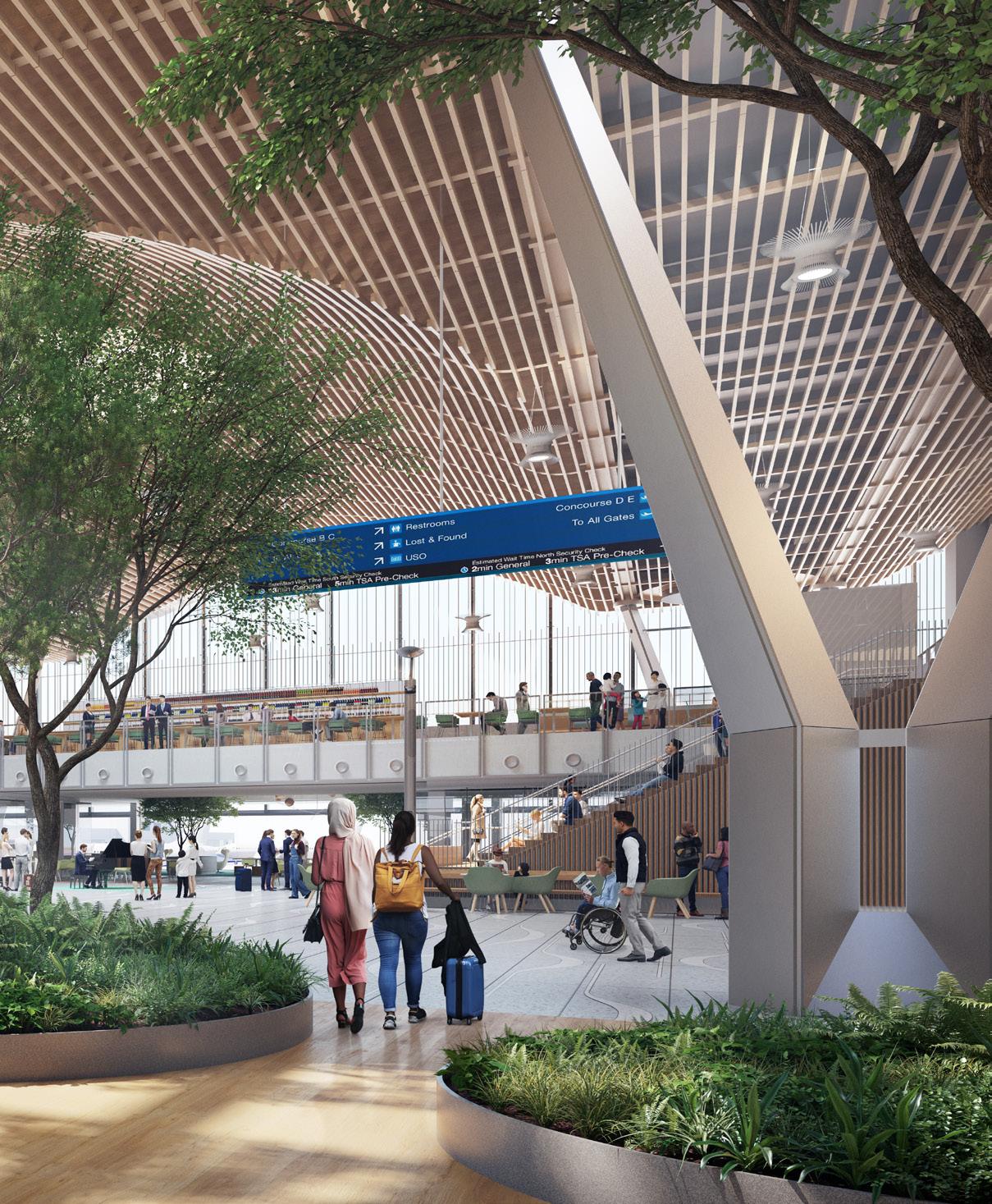 ZGF worked with landscape architect PLACE to integrate a robust interior landscape program as a primary element of the biophilic terminal design, intended to de-stress a passenger’s journey.