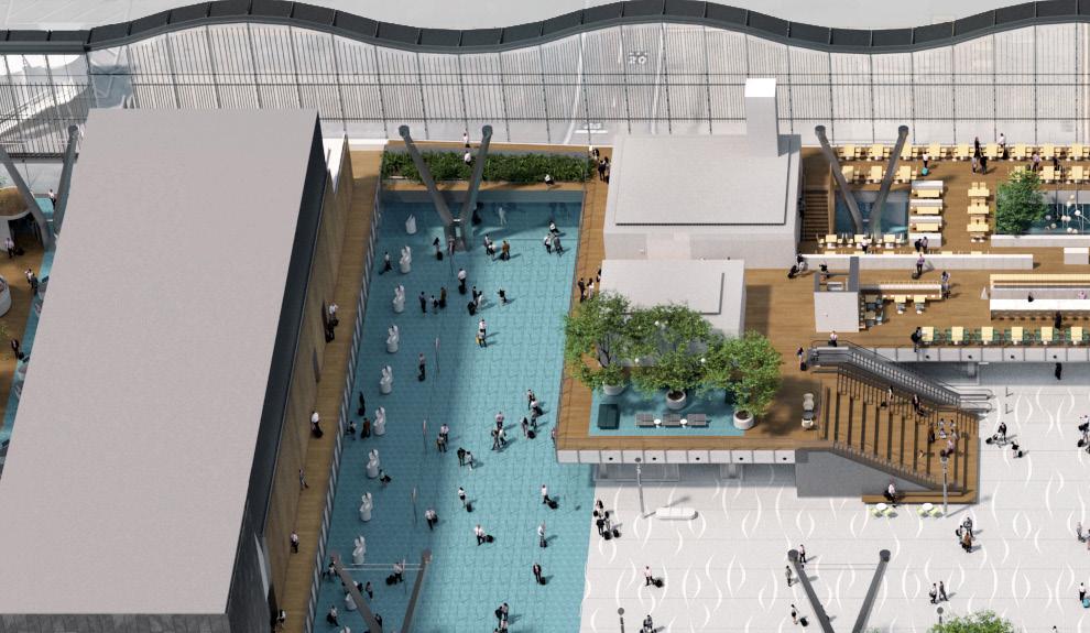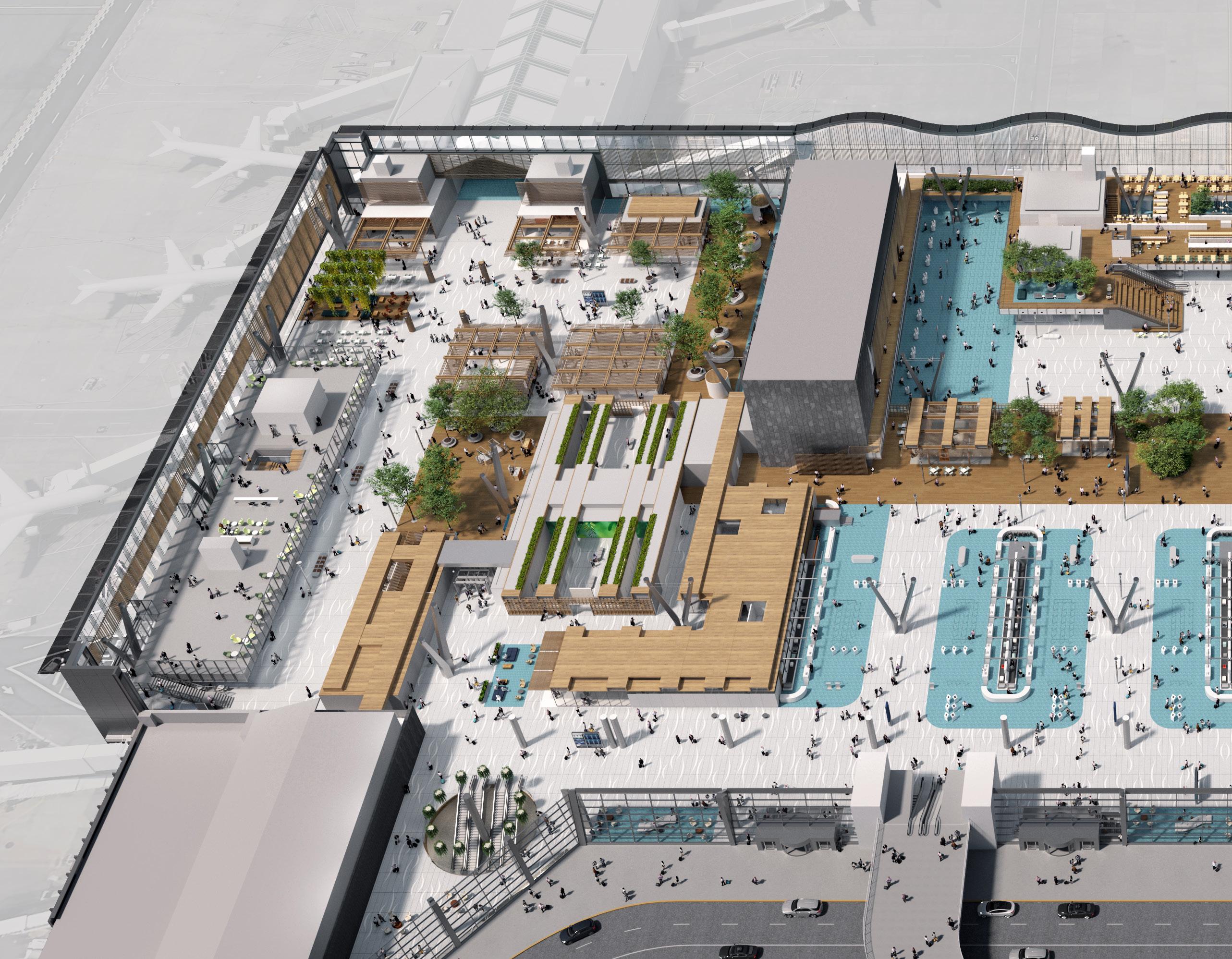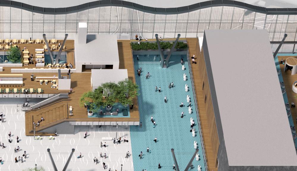 Post-security, the new terminal evokes the more intimate scale of the city itself with a series of concession experiences and lounging spaces within the large volume.
