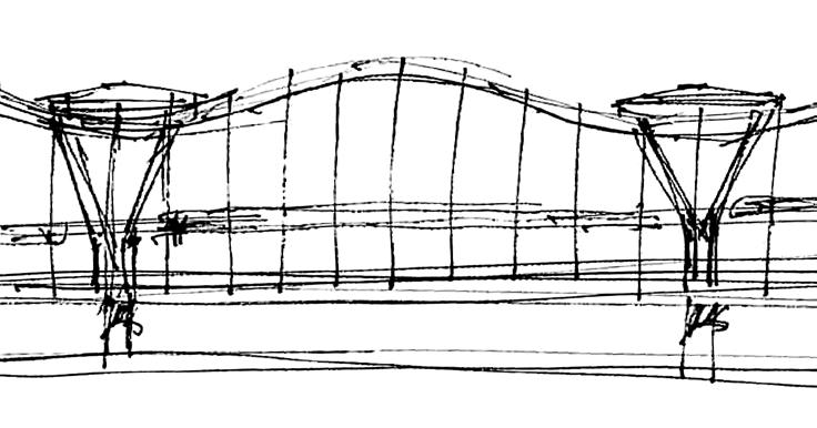 The team was able to fine tune the grid and locate just 10 of the massive 53-foot columns within the existing terminal footprint, with the remaining 24 all outside its perimeter.