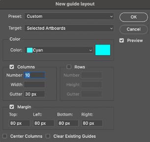 View > Guides > New guide layout and input the settings given in Figure 1.