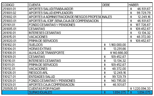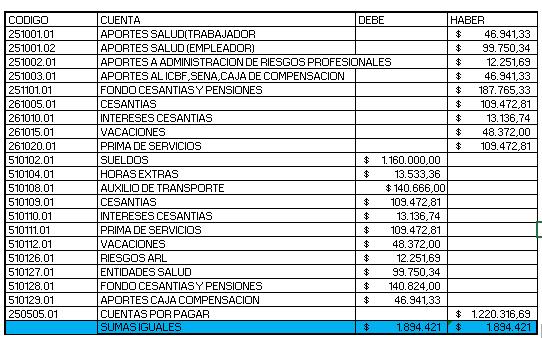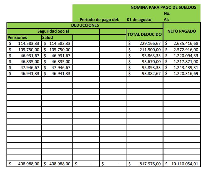 LA EMPRESA CANCELA LA NOMINA DE PERSONAL ASI: