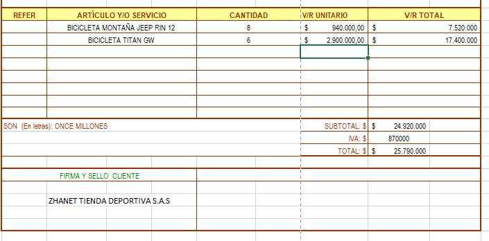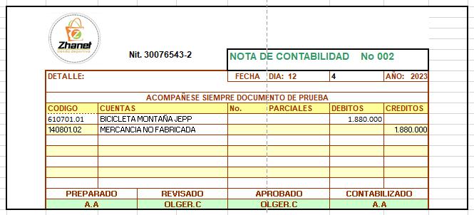 3.5 abril 12, venta de 2 Bicicletas de Montaña Jeep talla s Niño Rin 12 a $ 1.220.000 más IVA, a Juan esteban Cáceres NIT 25.044,556 - 7., pago 65% contado y saldo a 30 días. Realizar registro del Costo