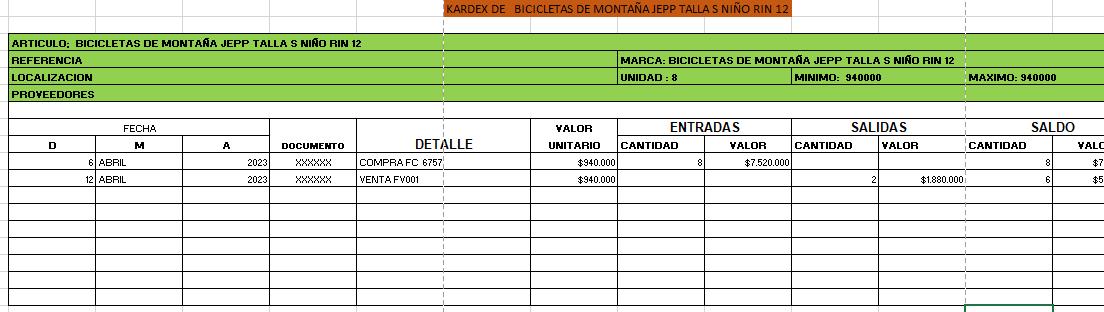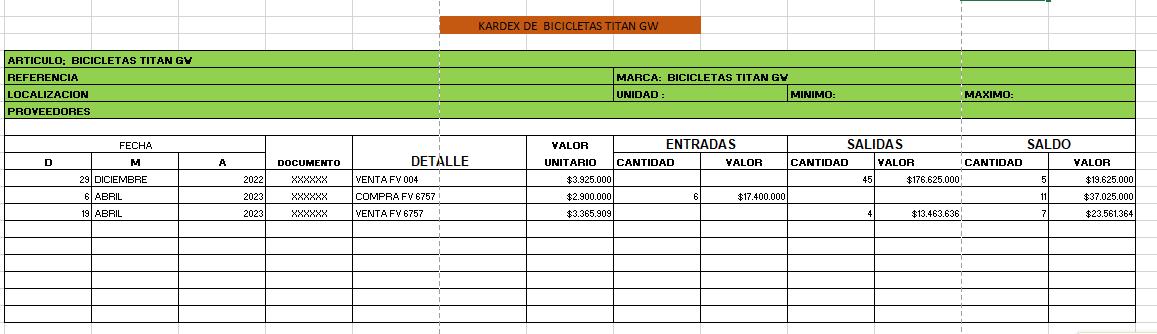 • ELABORE LOS KARDEX PARA EL AÑO 2023, TOMANDO LOS SALDOS DEL AÑO ANTERIOR.