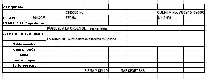 ND COSTO CHEQUERA $270.000 BANCO DAVIVIENDA.