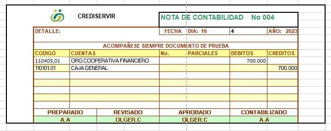 3.7 Abril 17. la empresa efectúa apertura cuenta de ahorros en crediservir por $700.000,