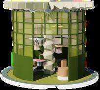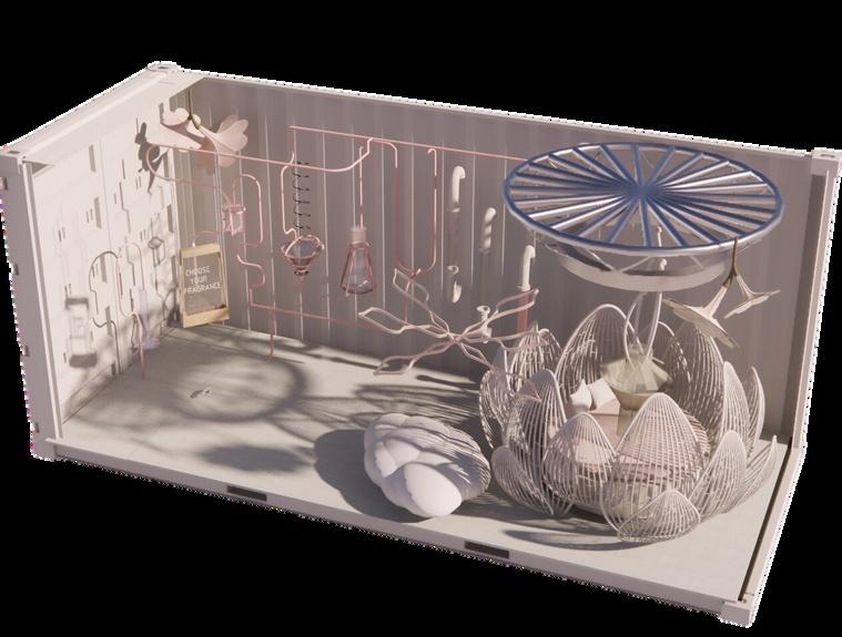 Thisbeveragebarusesnatural plant-basedingredientssourced fromitsadjacentgarden. Customerscanobservethe beverage-makingprocess, makingtheirexperience engagingandenjoyable. Thisconferencetableisplacednexttothe laboratoryandismainlyusedbyresearchers. Thetopmountedfragrancediffuserallowsthem toexperiencetheirowndevelopedfragrance duringdiscussions,helpingtoidentifyand addressshortcomings.