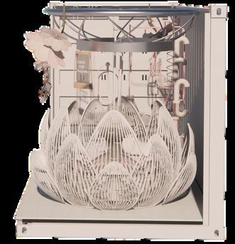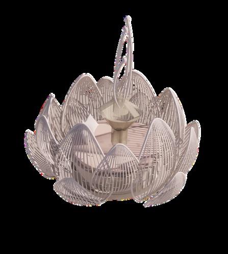 Thisbedisforwomentorelax andrest.Itspetal-shaped edgesautomaticallyopenwhen someonepassesby,andthe centeroftheflowerisasound systemthatcreateswhitenoise tohelppeoplefallasleep.