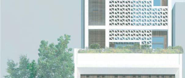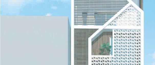 Takao Long House, 5 floors building combining work and family life. Through void space, nature is led into the middle of the longhouse. A porous facade permeates air flow while limiting the sunlight and reducing heat adsorption, minimising the use of air conditioning.