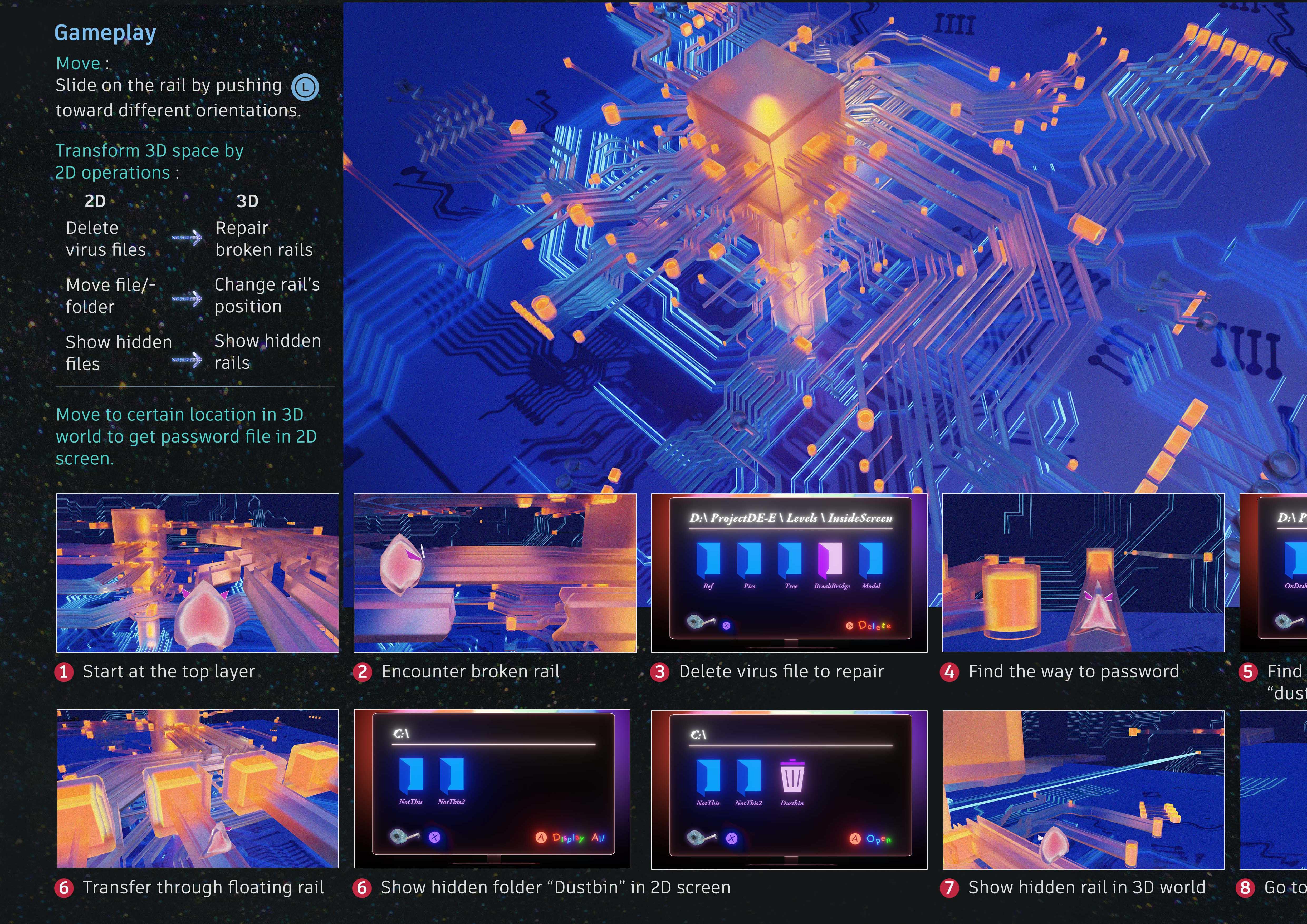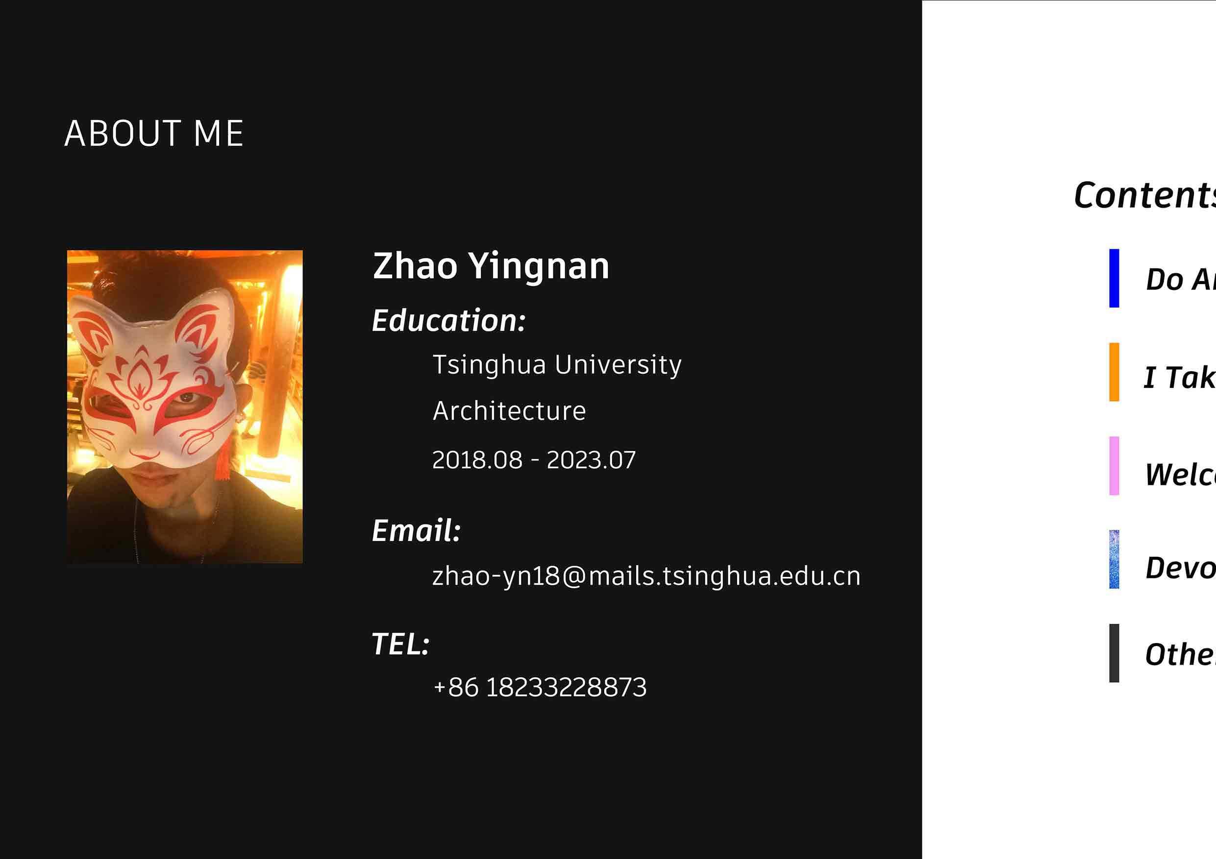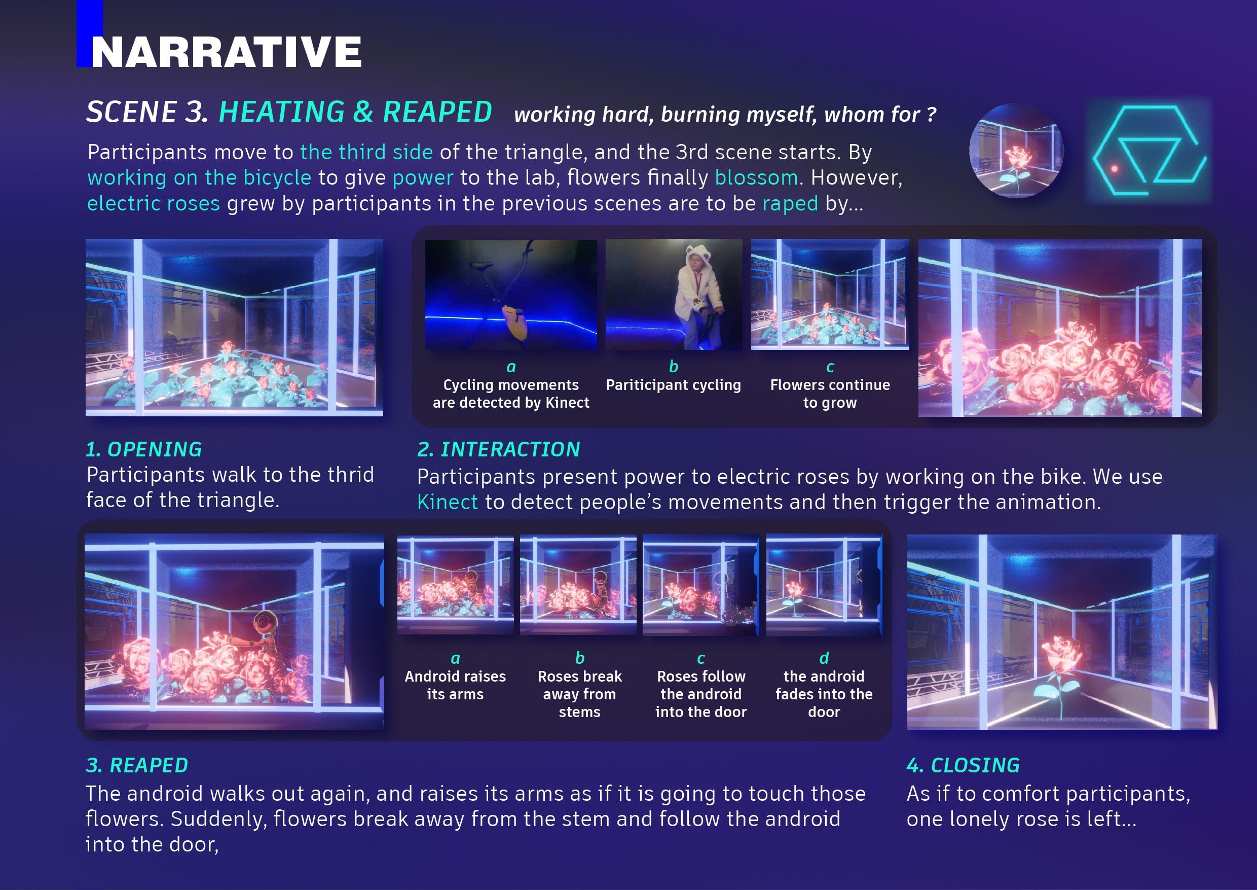 Group work. I did the experience design, the animation for scene 4, the coding for scene 1&2&4 and took part in the construction.