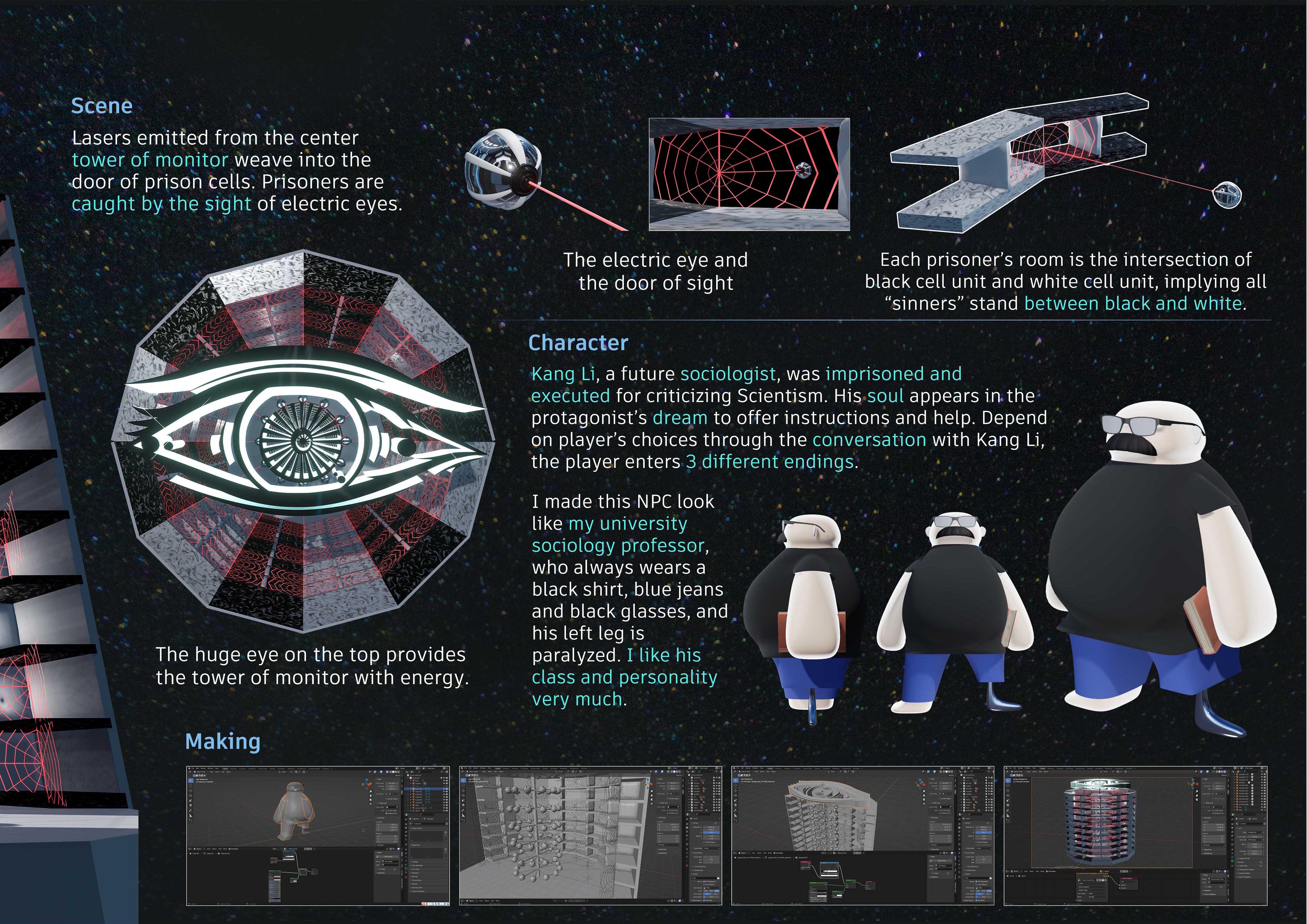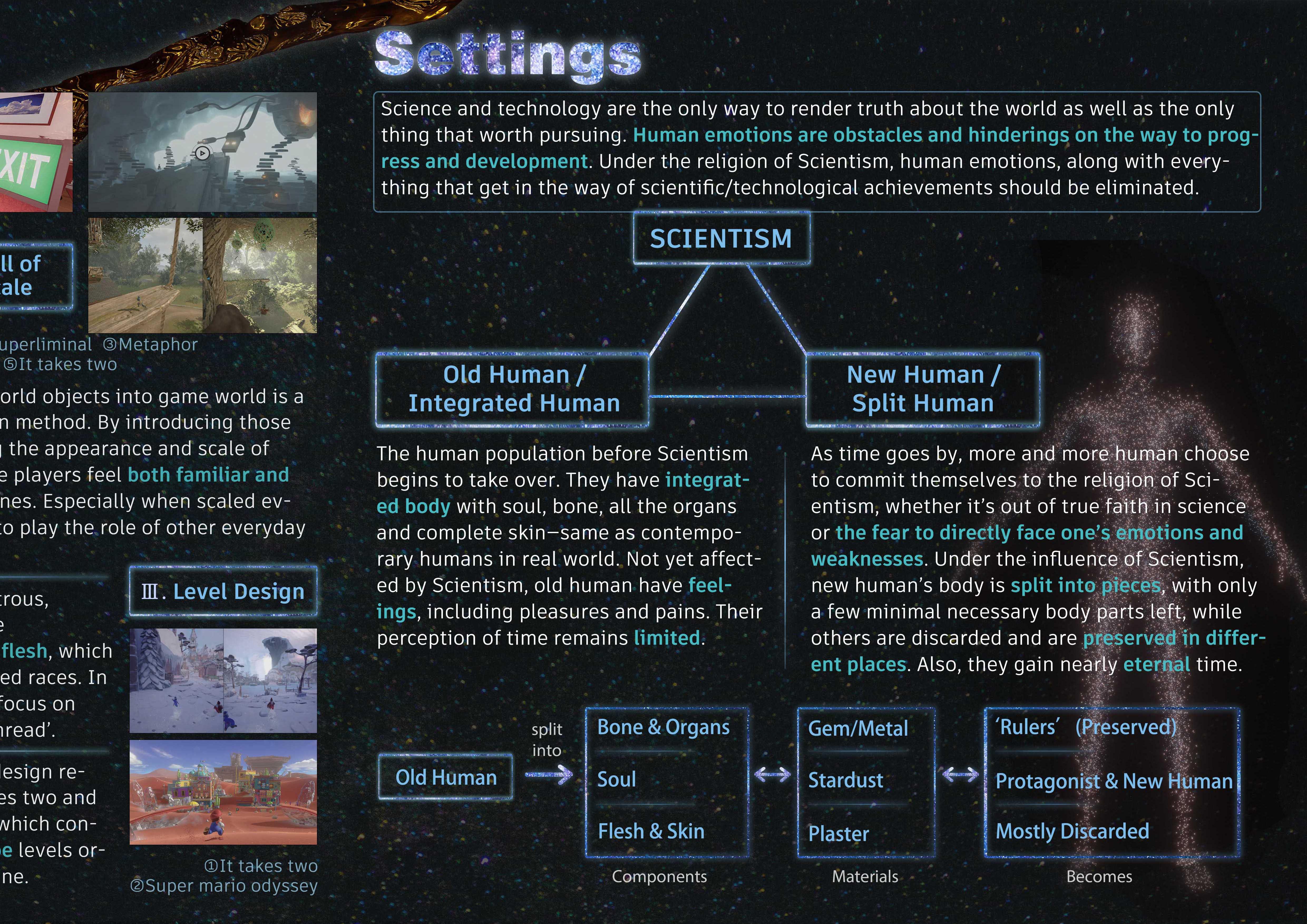 An adventure game design, telling the story of becoming complete human in a scientism-dominated future.