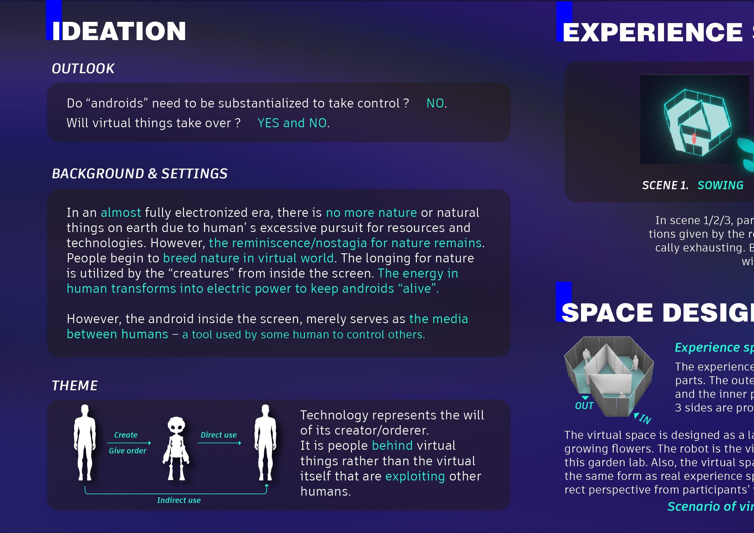 An interactive experience space design to express reflections on the relationship between human and AI.