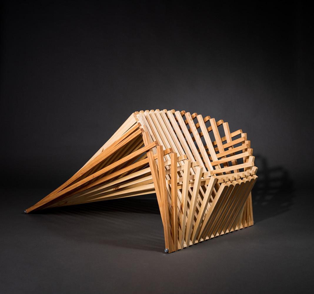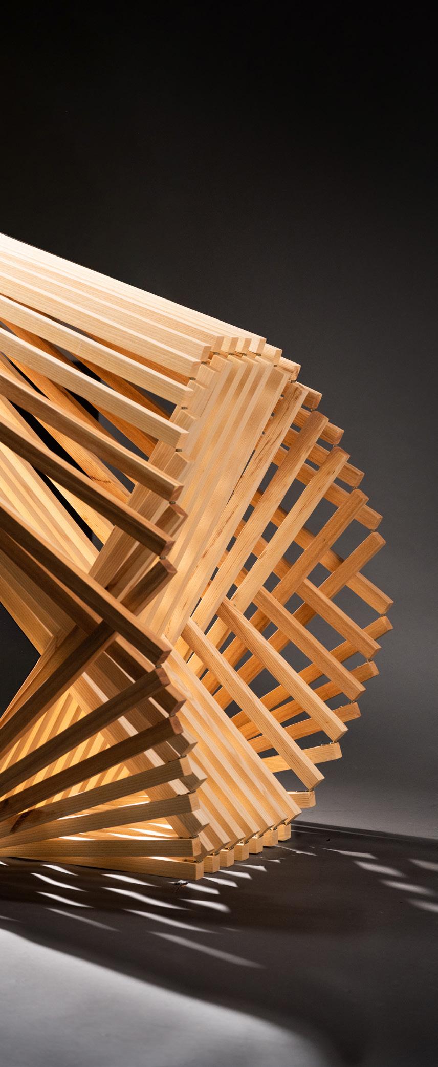 This chair was inspired by Robert van Embricqs’s “Rising Chair”. Done in collaboration with Peter Song and supervised by Elizabeth English. The design intent of this chair revolves around a hypothetical client: esteemed modern-day filmmaker Christopher Nolan. Inspired by his deeply existential filmmaking, we distilled the key themes as being: intricately intertwined narratives; mind-bending geometry; and rigorous dimensionality. After extensive prototyping and iterations that were elevated by parameterizing the design process, the chair’s design called for pushing the limits of woodworking tolerances. The final result was made possible through an exceptional attention to detail, and a love for the joy of beauty and craft. The chair was featured in the UWSA 2023 Project Review at the Design at Riverside Gallery Exhibition and has been on display in the UWSA library since.