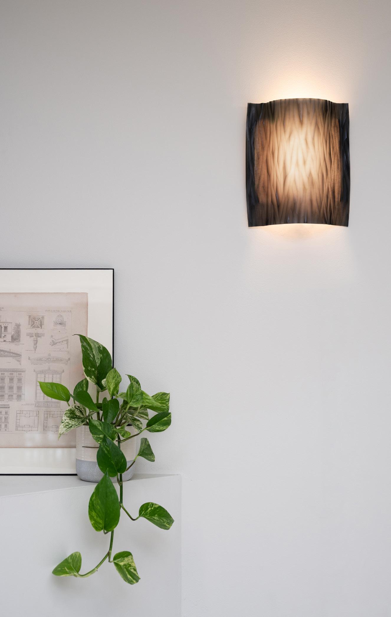Light cast on moving water will always create unique sculptural qualities. Caustics suspends this timeless yet fleeting moment in a sconce. The inspiration for Caustics is a mixture of the traditional hand-carving techniques of wood, combined with explorations in digital and CNC fabrication. The resulting form emulates the entrancing light projections of a caustic network. It is highly tactile to touch and sight; it is elegant and lively; disordered yet contained. As the sunlight changes through the day, so do the textural qualities. When the day fades to darkness, and Caustics is switched on, a rich new lighting dynamic appears. New interactions with this lamp’s environment and users are constantly being redefined.