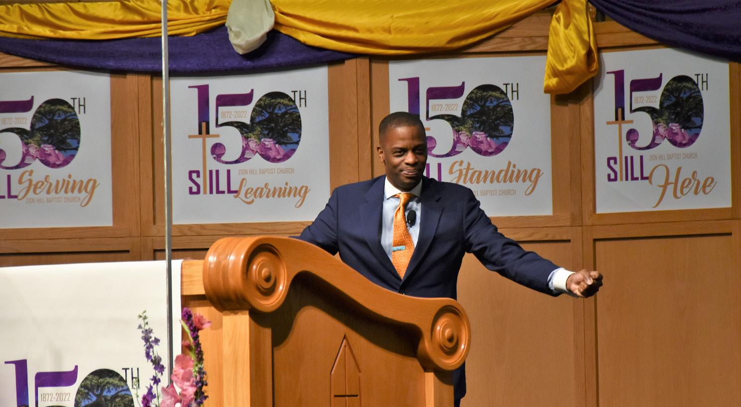 Can you imagine the courage and faith required to establish and build your own place of worship in 1872 just seven years past the passage of the 13th amendment officially outlawing slavery? Reverend Robert Grant and seven freed slaves established Zion Hill Baptist Church in a brush harbor, according to tradition, to demonstrate their great faith and commitment to worshiping and serving God. The Reverend Aaron L. Parker, PhD and Zion Hill members commemorated the founders’ sacrifices and commitment amidst an atmosphere of threats and racial barriers related to their past enslavement. A highlight of the Sesquicentennial Celebration service Sunday, August 21, 2022, was the dynamic preaching of The Reverend Dante Quick, PhD, a son of Zion Hill.