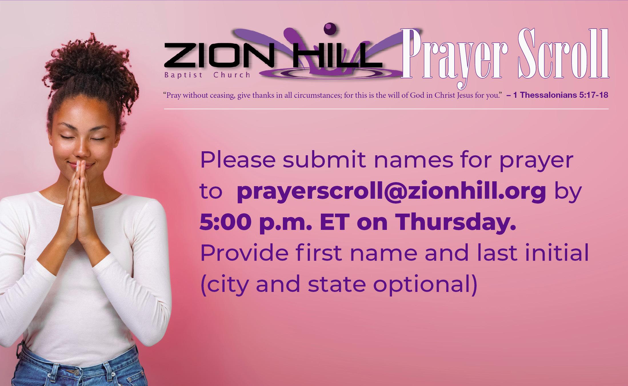If your ministry has a virtual activity or news that you want mentioned, you can send an email to zhbc@zionhill.org. We welcome all ministry contributions: writing, story ideas, suggestions, digital photographs, artwork, letters, responses to our columns, reviews, etc. and look forward to hearing from you.