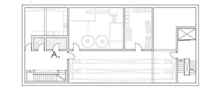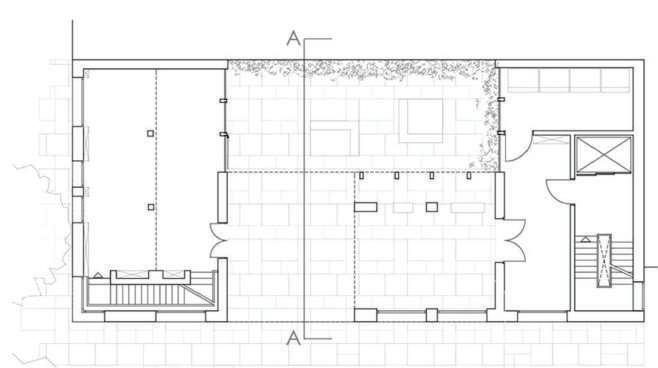 To increase the functionality of the great volume of Casa del Sale is proposed a secondary structure that maintains an improved circulation of the building. The lighting in this hall is fixed to the previously added new roof. The Roman wall partition is left untouched.