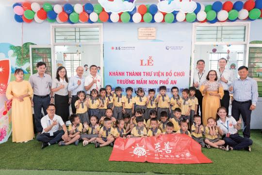 本次與至善基金會前往越南中部,不僅實地 瞭解上述5所「愛心閱讀室」與「玩具圖書館」的建 設與運作情況,更深刻感受到至善團隊在地推動的 專業與用心。計畫獲得當地政府、兒童基金會、學 校師長與家長一致肯定,這些場域也成為校園中 最具活力的學習空間。學童們平時可在其中輕鬆閱 讀、在遊戲中探索學習,透過同儕互動,培養健全 身心發展與正向的人生觀。