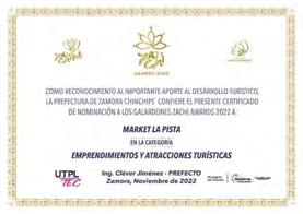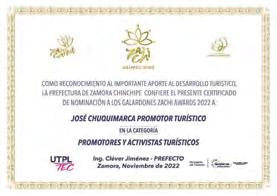 La Marca Zachi Awards también incluye el tratamiento grá co del elemento hojas de las 5 de la marca turísticas de Zamora Chinchipe; con la marca de reina Zachi 2022 considera el concepto en las cinco puntas de la corona