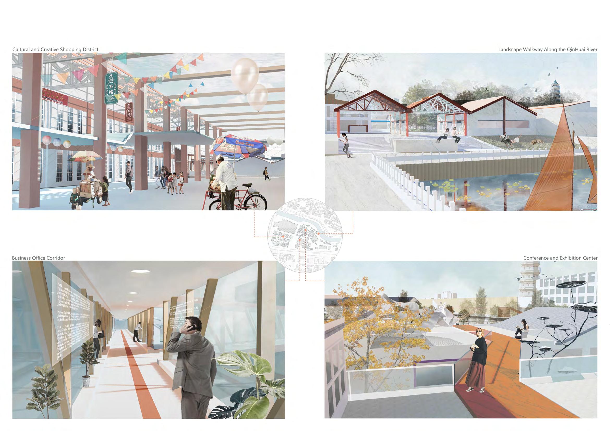 In order to better connect the cultural and physical spaces, the two conflicting cultural elements of the site (industry and Buddhism) are relinked with the physical spaces to create three new spaces: business, toursim and landscape. This also separates the corresponding users to avoid negative influences between them.