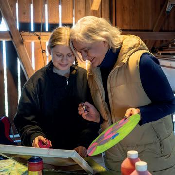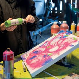 Eisiger Wind durch die Scheunenbretter im Winter, Hitze im Sommer: Vor gut einem Jahr mietete Sabine Zgraggen (56), Leiterin der Spital- und Klinikseelsorge, einen Platz in einer alten Scheune. Was wenig komfortabel klingt, wurde zu einem besonderen Kreativraum. Gemeinsam mit ihrer Tochter Frida (19) verbringt sie hier unverplante Zeit. Frida – benannt nach der Künstlerin Frida Kahlo – malt, sprayt und experimentiert. Sabine fotogra ert oder malt selbst. Zwischen eingelagerten Schi en, Holzbrettern und einem 150 Jahre alten Rosshaar-Sofa entstehen Performances, Bilder und neue Perspektiven. Für die Managerin ist dieser Ort ein bewusster Gegenpol zum kop astigen Berufsalltag: ein Raum, in dem Kreativität spielerisch und dialogisch sich Bahn brechen kann – aber nicht muss. Frei nach dem Motto: Geh mal woanders hin und spüre, wer du auch noch sein kannst!