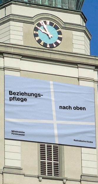 Ein zentraler Bestandteil der Kampagne ist eine Blachen-Aktion. An Kirchtürmen, Kirchengebäuden oder auf dem Kirchengelände können grosse Blachen mit prägnanten Schriftzügen angebracht werden. Die Aussagen greifen kirchliche Angebote und Haltungen auf und machen diese im ö entlichen Raum sichtbar.