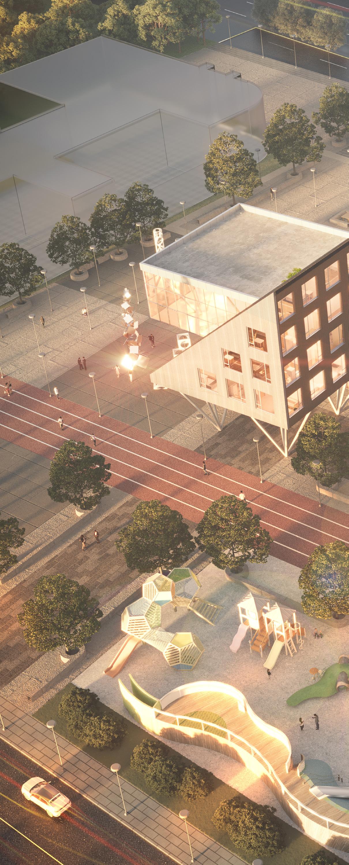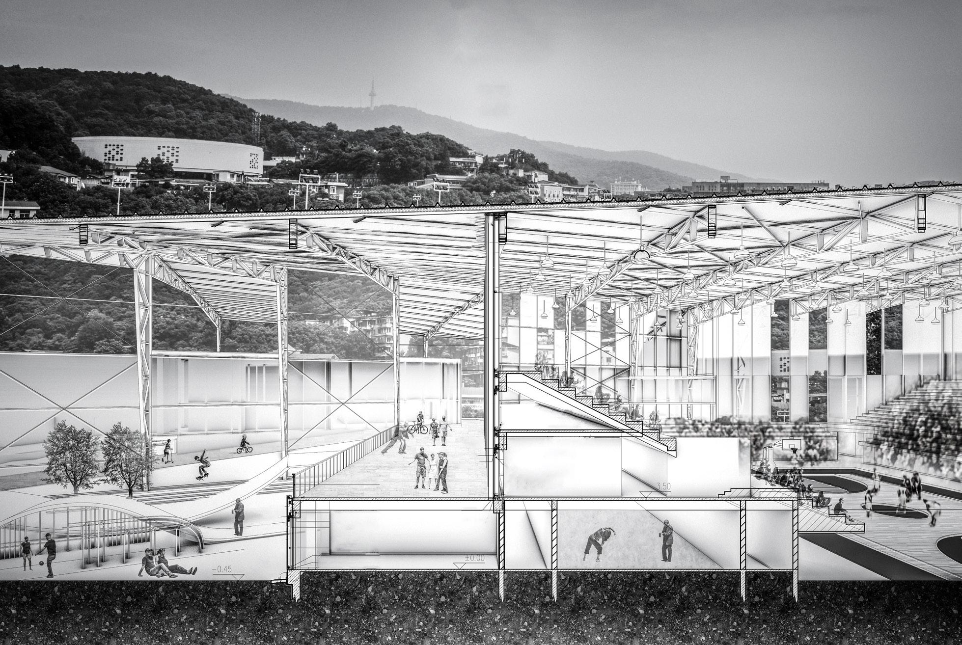 Traditionally, stadiums are only utilized for large-scale sports and cultural events, which leads to underutilization in the current era. This design reimagines the stadium, integrating it into the city and opening it to the community. By dividing the traditional stadium by function, space, and form, this project aims to extend the spatial meaning and create a positive, shared space while meeting basic needs.