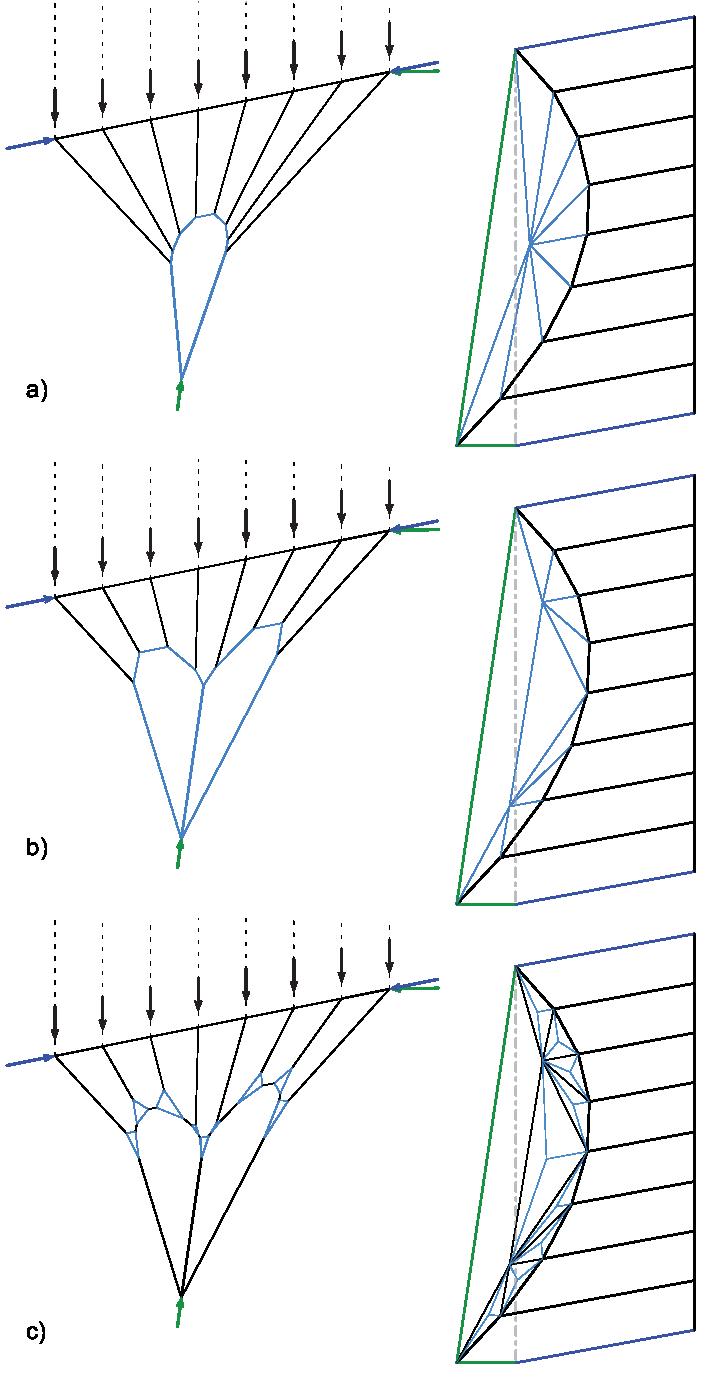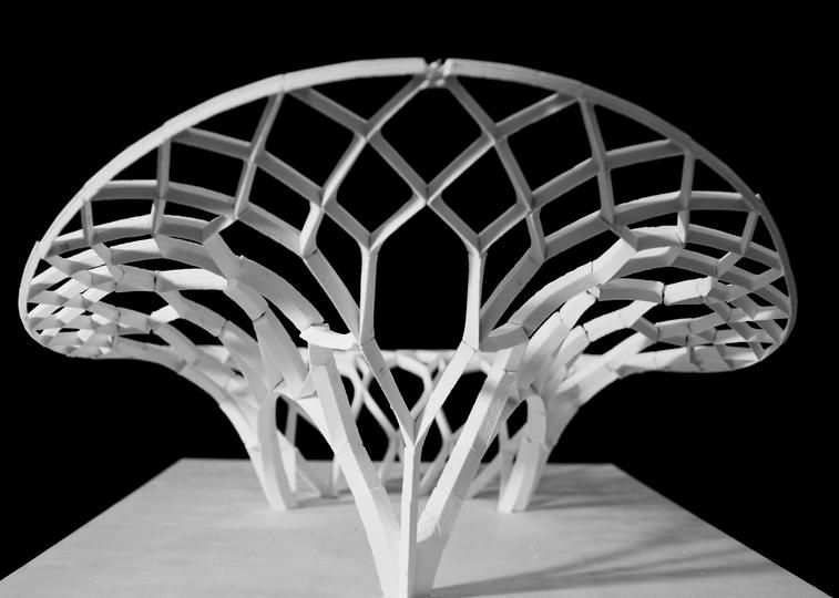 In their article "Funicular Funnel Shells," Matthias Rippmann and Philippe Block introduce an innovative funnel-shaped shell design for lightweight and open-building applications. They combine a pure compression shell with a funnel tension ring, enabling the creation of perforated shells and undulating ridgeedge structures through controlled and localized manipulation of compression and tension forces. The article also validates the feasibility of 3D printing a discrete structural scale model.