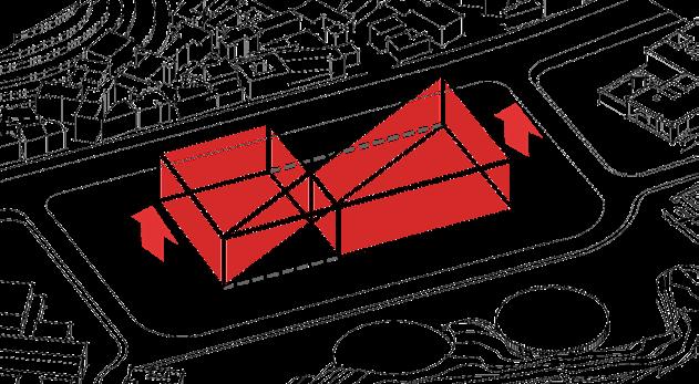Step6. The spatial relationship on the axis is echoed by the height change at the top of the building.