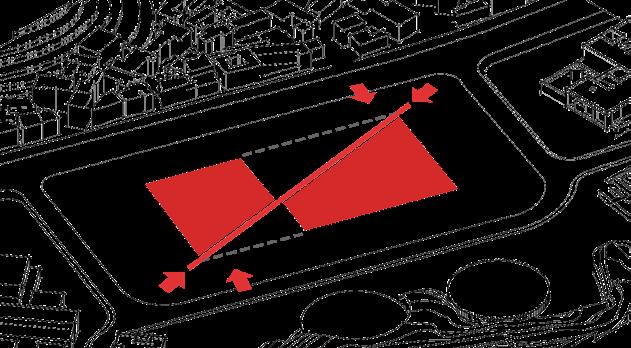 Step2. Dividing the site into two parts according to the building functions, using the diagonal line as the axis.