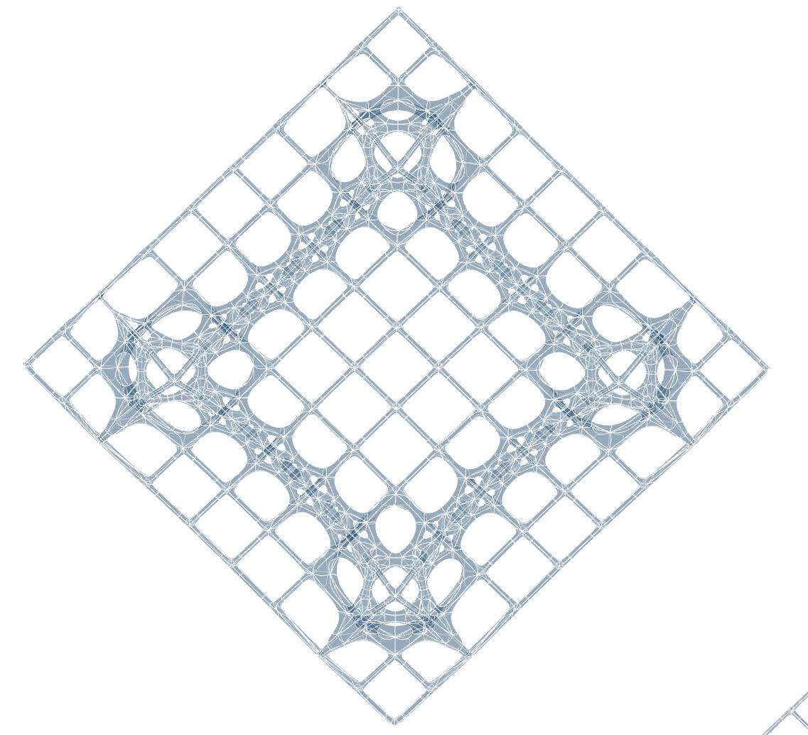 For the subdivided structure, we aimed to adjust its thickness in all directions according to the forces acting on it. However, we encountered challenges with connecting the parts. By exploring the Proximity Network, we eventually discovered the logic behind the connection points and successfully applied it to the structure.