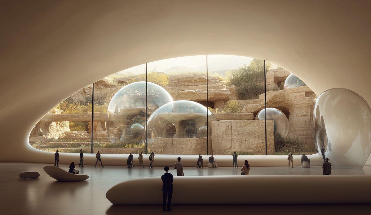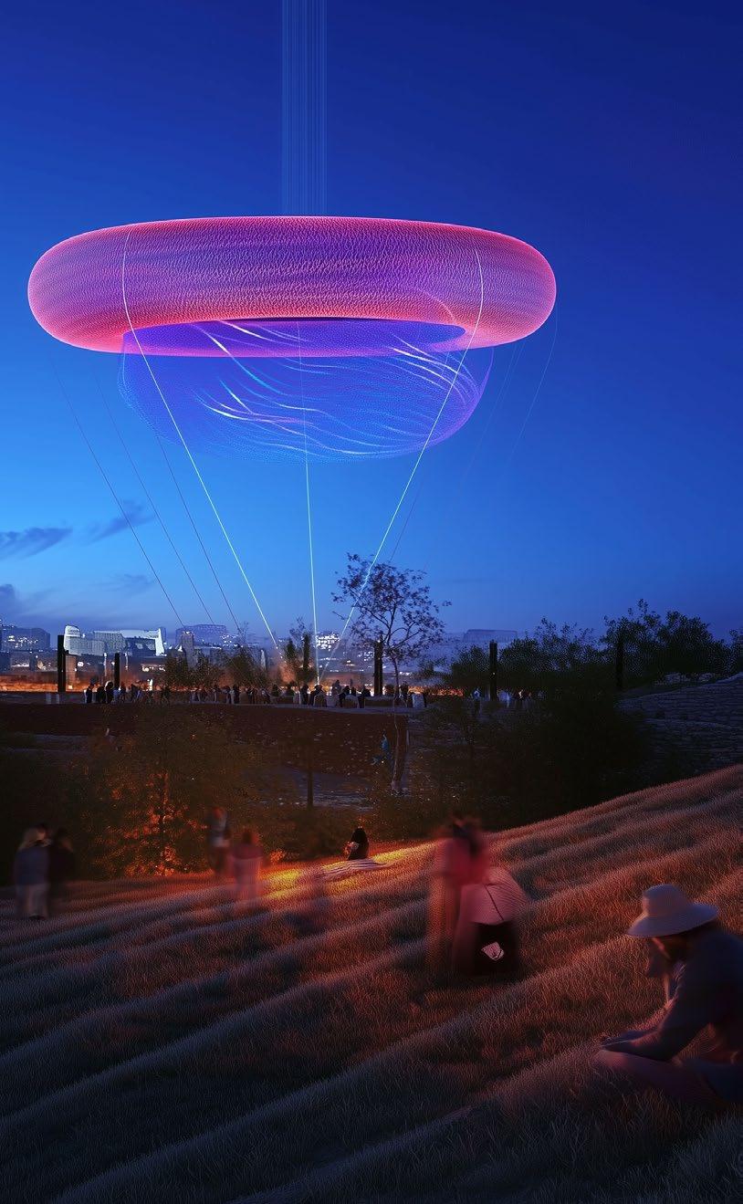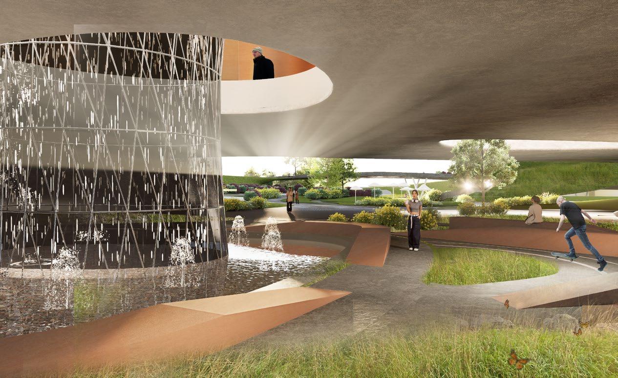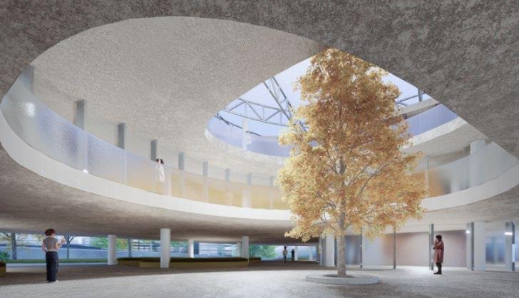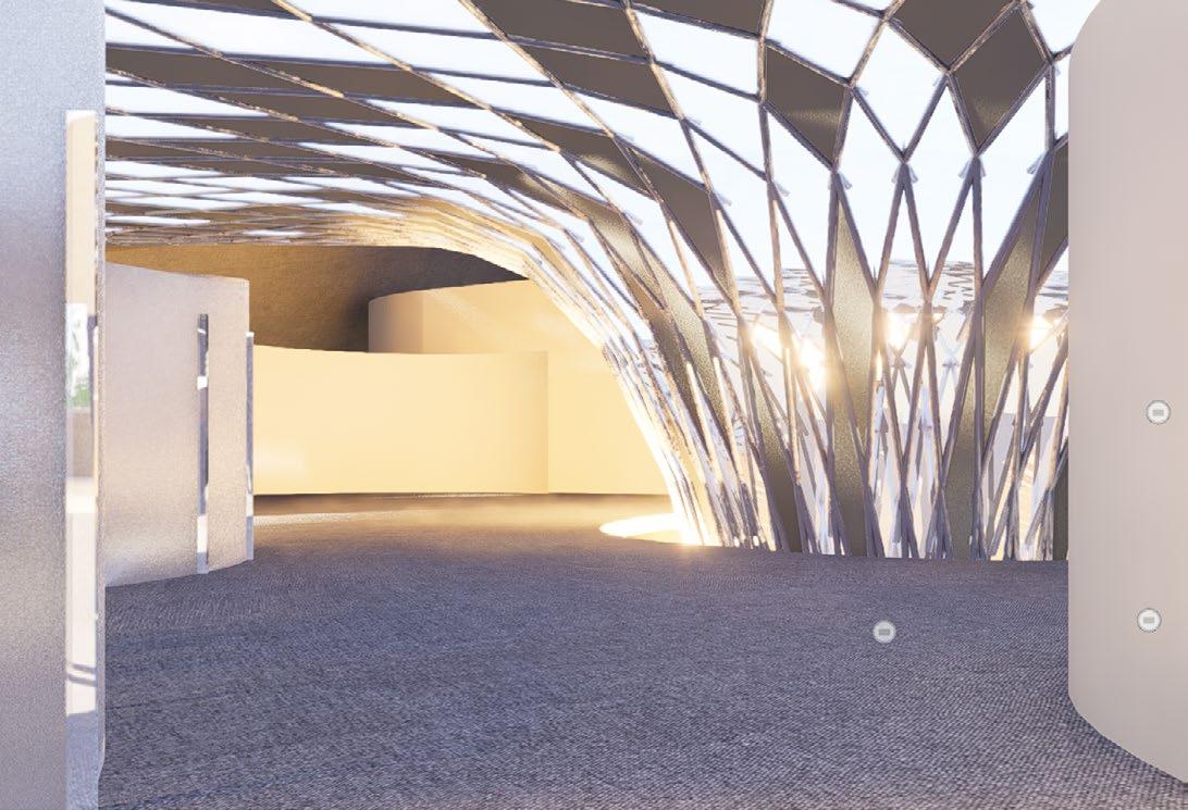The design will engage all the senses to create a memorable and immersive experience. The sound of rustling leaves and the gentle swaying of the vines in the wind will be amplified and incorporated into the acoustics of the building. connection to the concept of growth and regeneration.