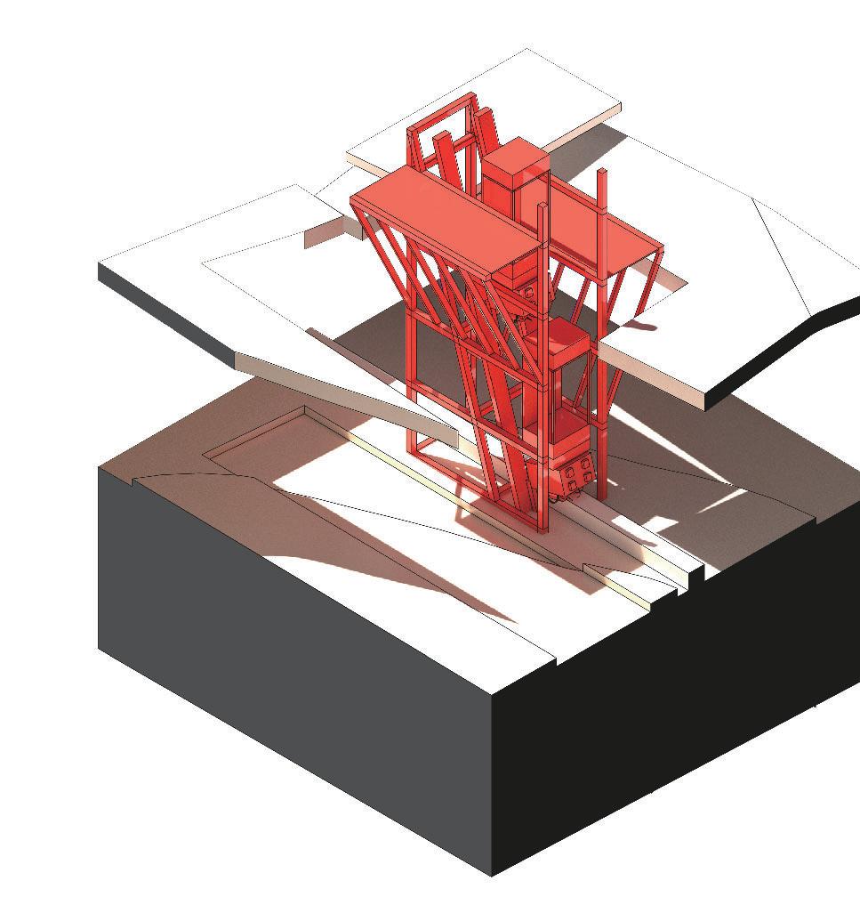 and lighting conditions as the roofing coverage evolves. To enhance user experience, multiple roads and entrances are strategically planned within this showcased environment, enabling individuals to navigate through different roofing phases at their own pace. The architectural features, or "folies," not only provide an alternative perspective for observing the displayed landscape but also offer a unique way to appreciate the stepped heating and lighting effects.