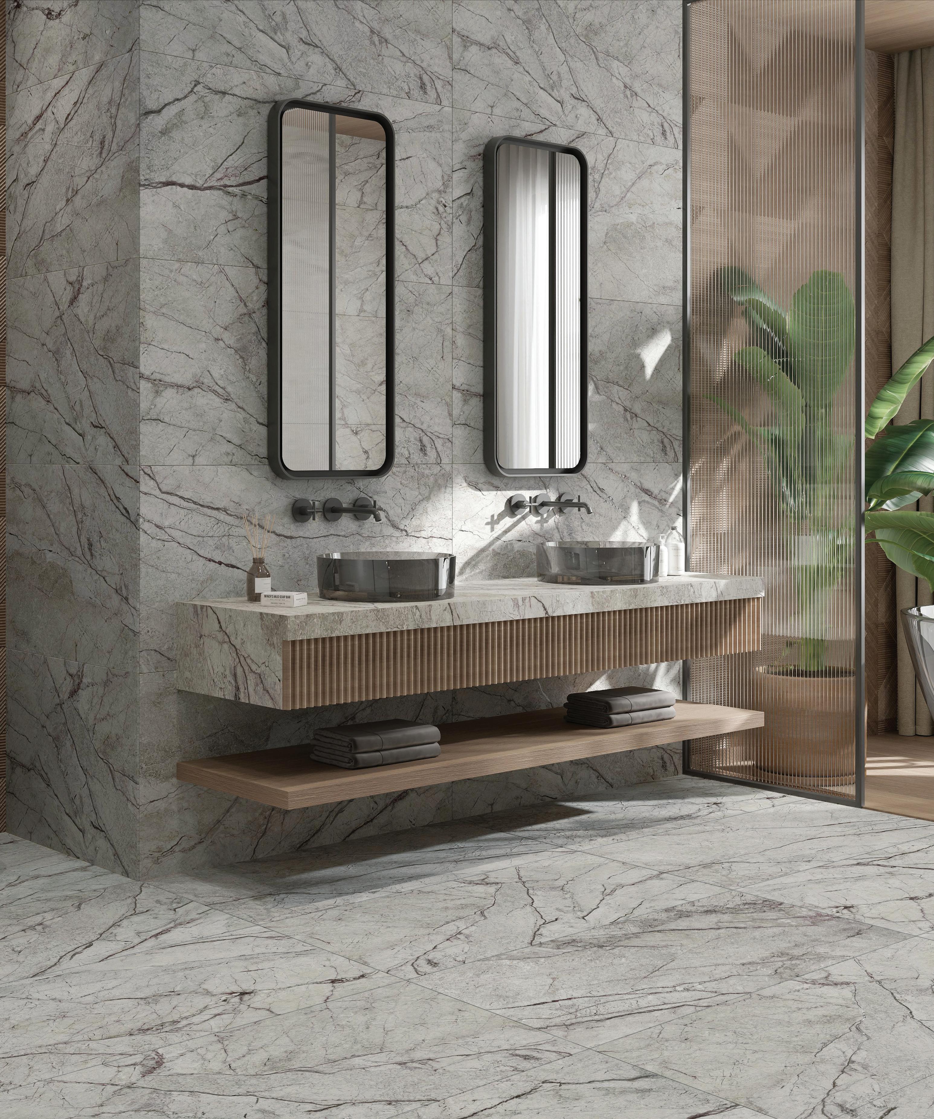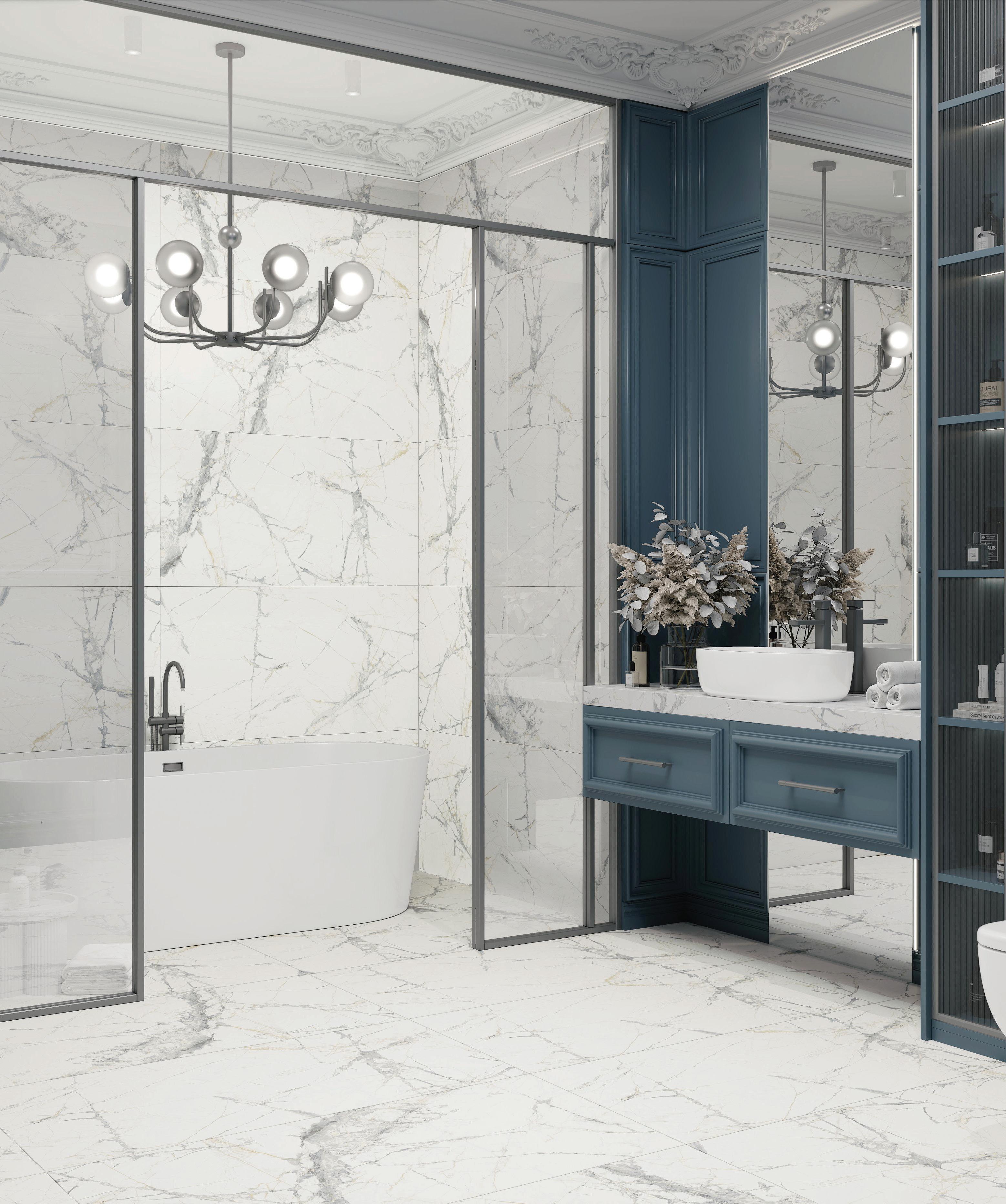 Cararra mermer, savršeno prikazan kroz keramičku pločicu, uvodi vas kroz vijekove svog postojanja, dajući impozantan izgled prostoru u kome se nalazi.