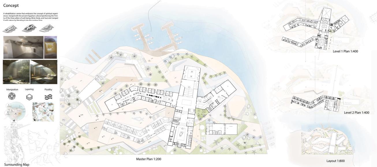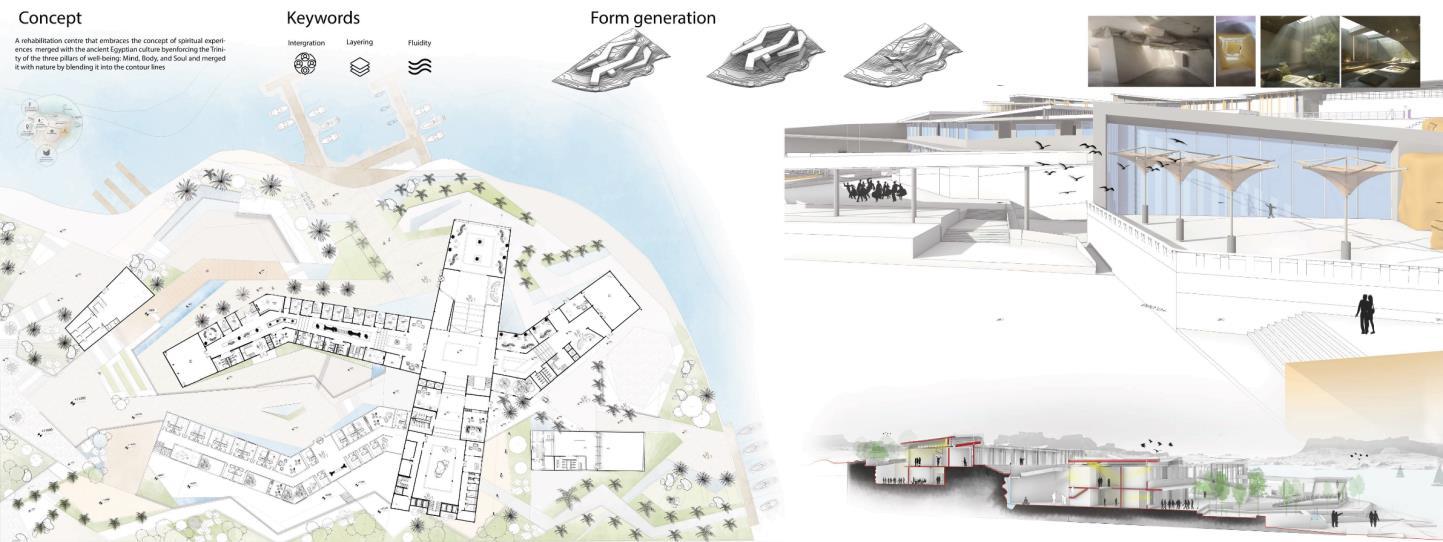 The design emphasizes creating spaces that promote social interaction, community engagement, and inclusivity. For the project patients , integrating a community plaza and a library accessible to both patients and the local community is essential. These spaces not only support the therapeutic needs of patients but also foster a strong, interconnected community on the island