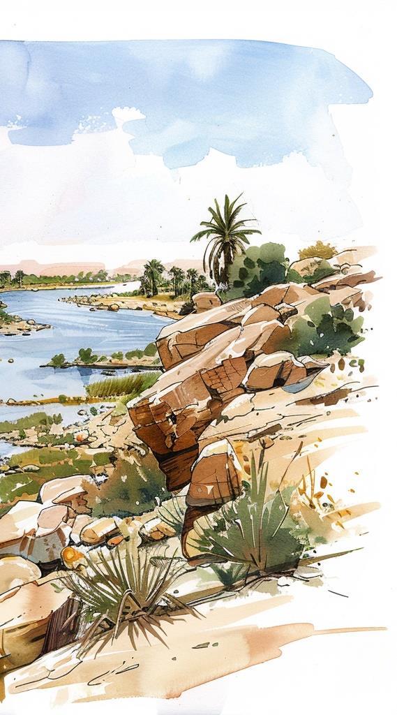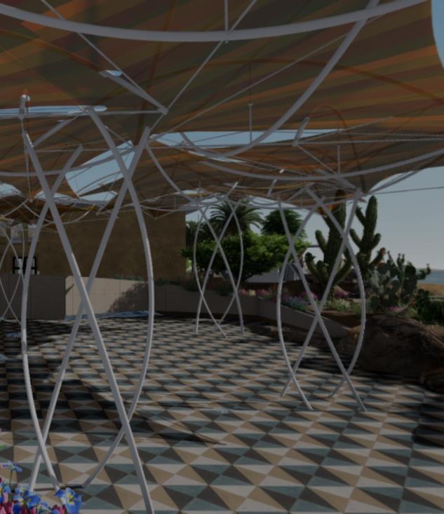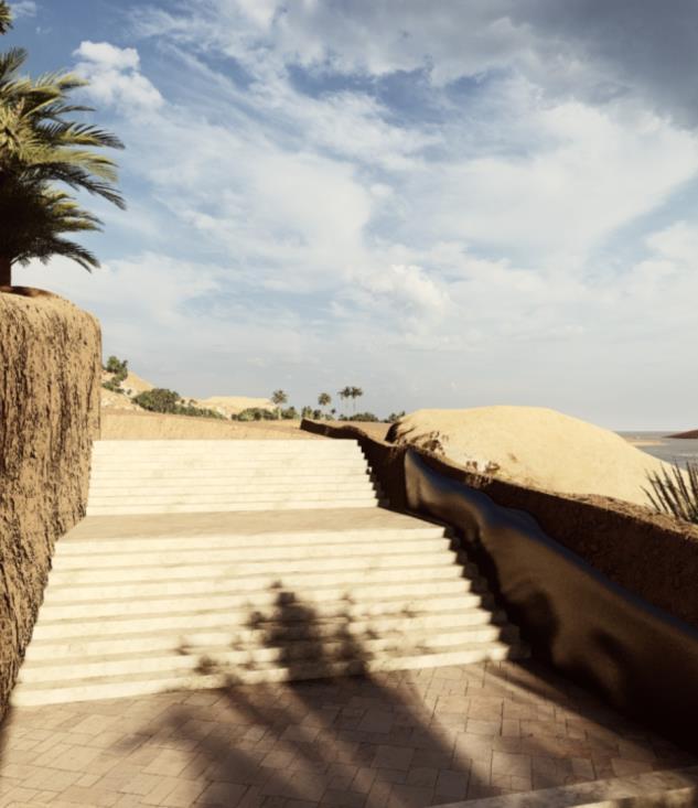 The landscape design of the Rehabilitation Care Center for PTSD patients in Aswan features a variety of native plants, carefully selected for their ecological benefits and aesthetic appeal. The chosen species include Aloe Vera Bush, Lemon Tree, Common Reed, Saguaro Cactus, Catalpa Tree, Mulberry Tree, and Tamarix nilotica These plants were selected based on their ability to thrive in Aswan's climatic conditions and their role in supporting local biodiversity. Aloe Vera and Saguaro Cactus, for instance, are drought-resistant and require minimal irrigation, promoting sustainable water use. Lemon Trees and Catalpa Trees provide shade and habitats for pollinators and insects, while Common Reed and Tamarix nilotica stabilize the soil and support wetland ecosystems. The extensive planting of Tamarix nilotica along the Nile shoreline, in particular, helps prevent erosion and enhances the ecological environment by offering shelter to various bird species.